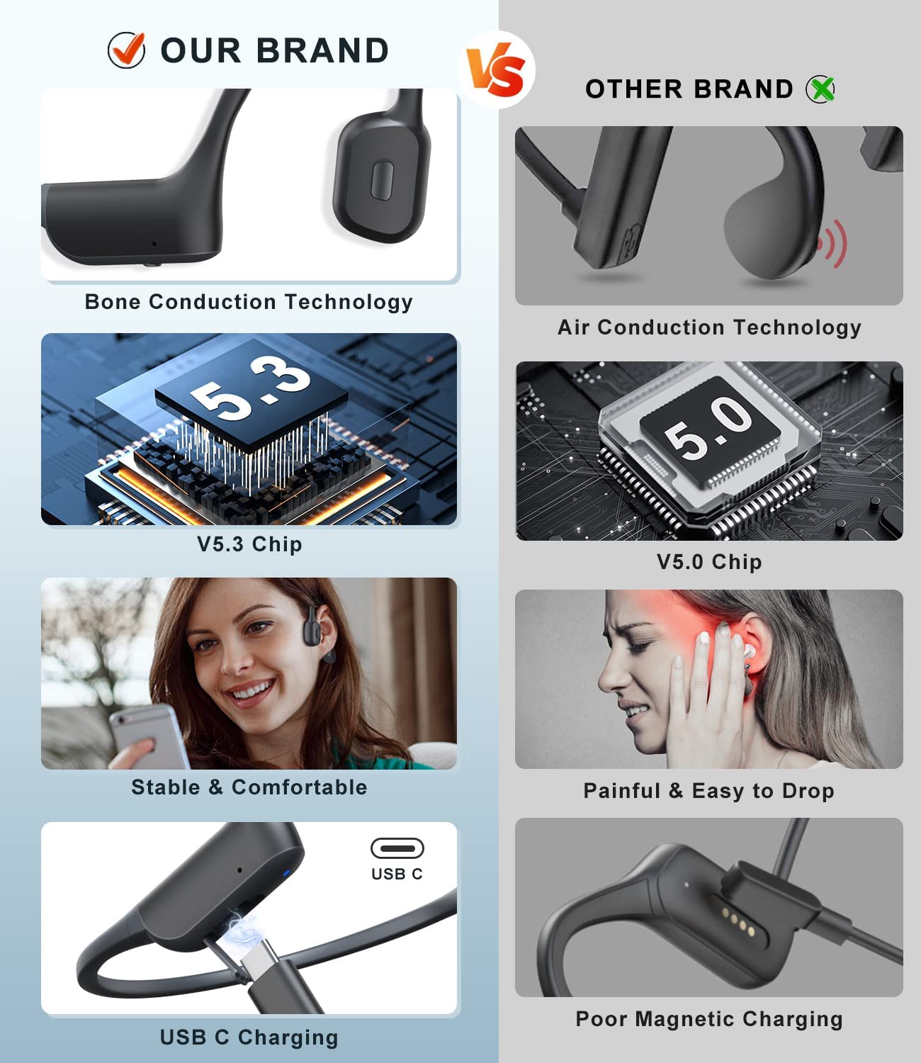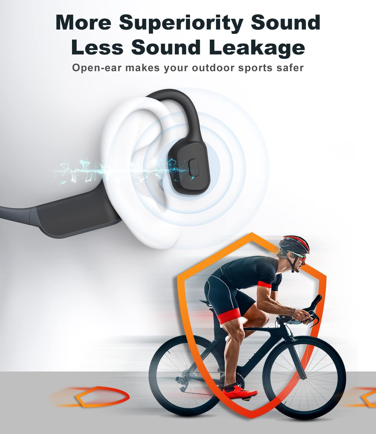 • Open-Ear Safety - True bone conduction headphones technology uses oscillator vibration through the bone to conduct sound waves directly to the auditory nerve, solving the problem of pain caused by ordinary wireless earphones to the ear canal. and listening to music while still being able to perceive the sounds of the surrounding environment to real-time guard your movement safety.