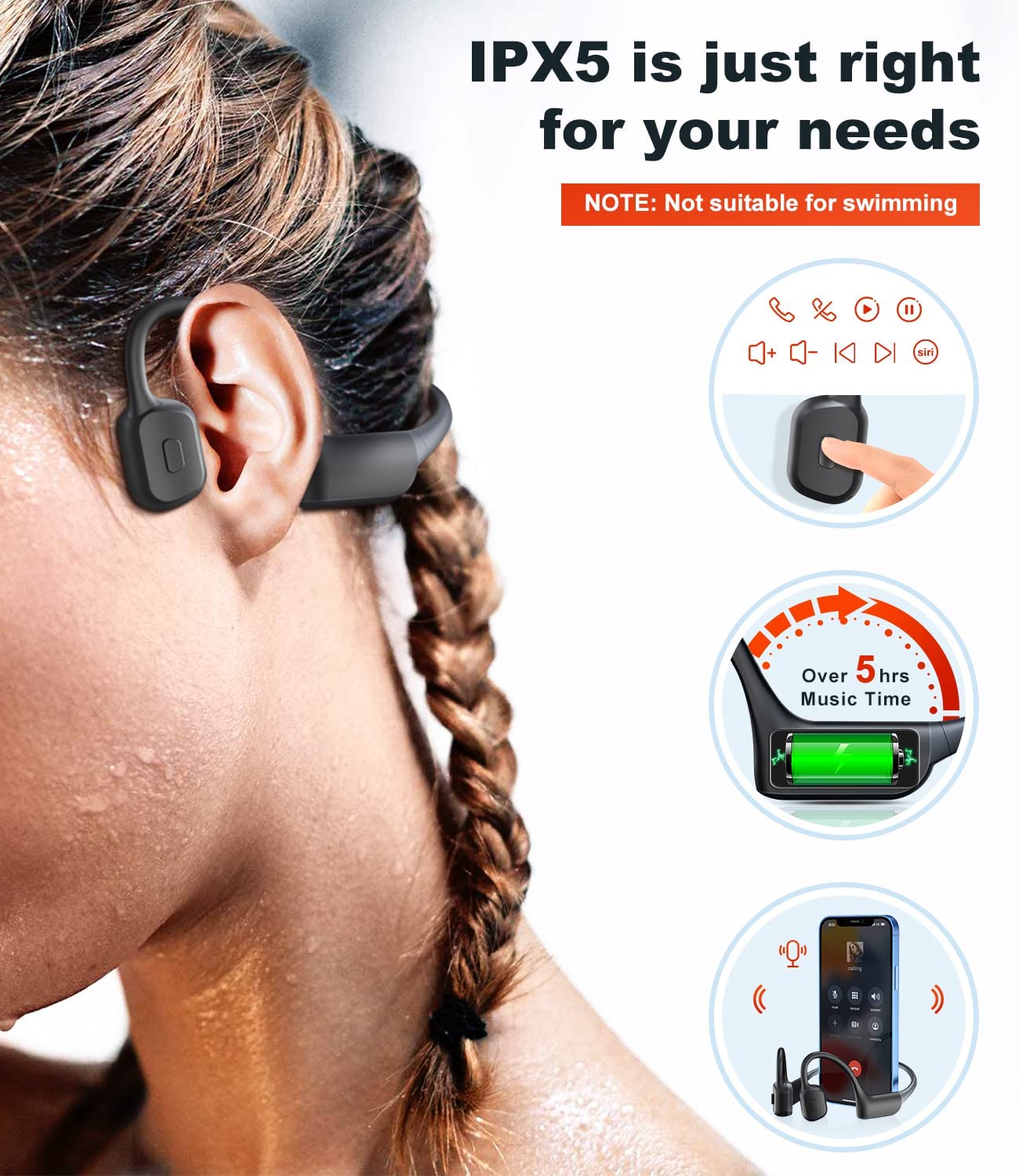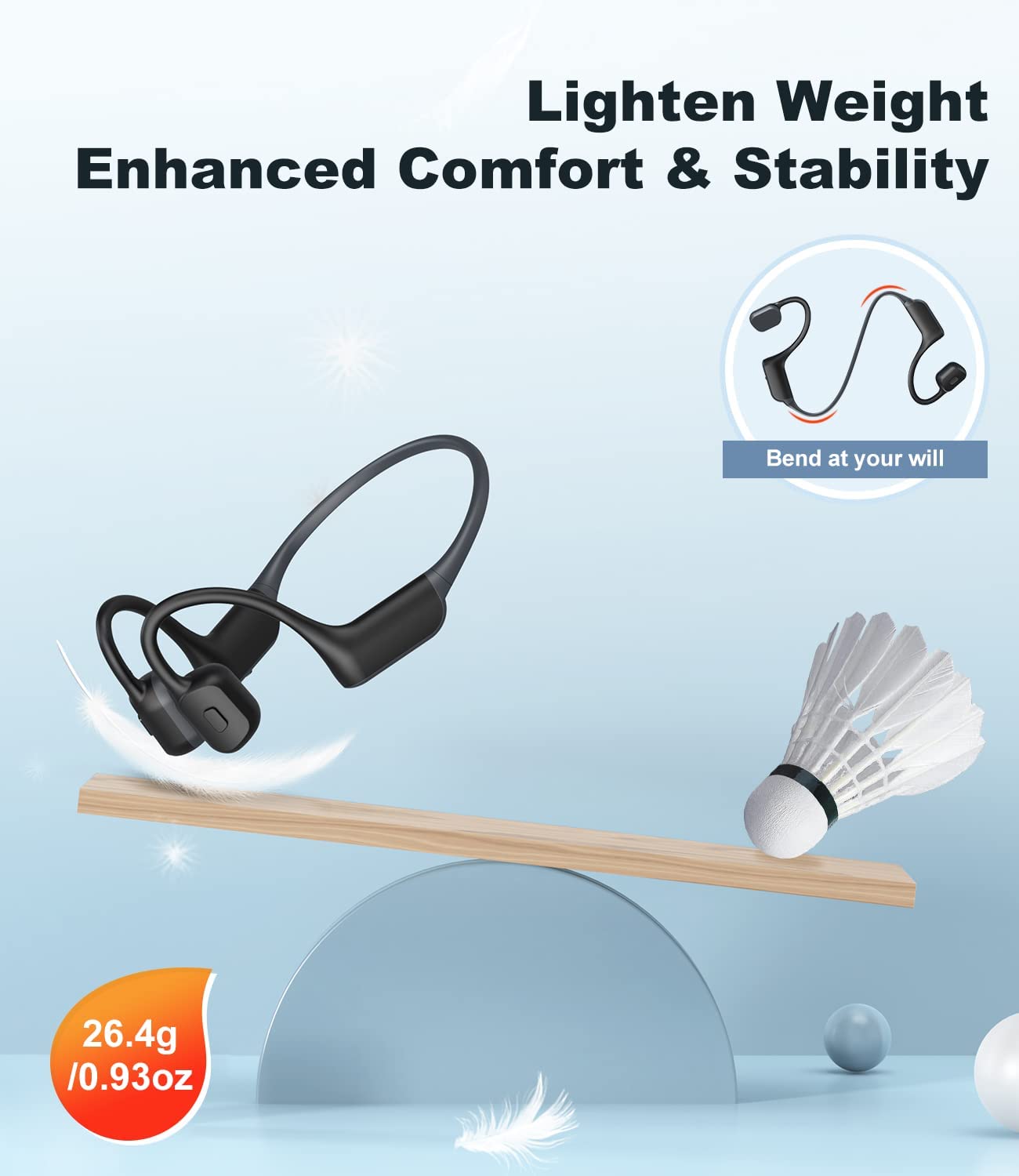LAKKA Bone Conduction Headphones, Open-Ear Headphones Bluetooth 5.3 Sport Headset with Mic, IPX5 Waterproof Sweatproof Lightweight Wireless Earphone for Running Cycling Driving Workouts, with Earplugs