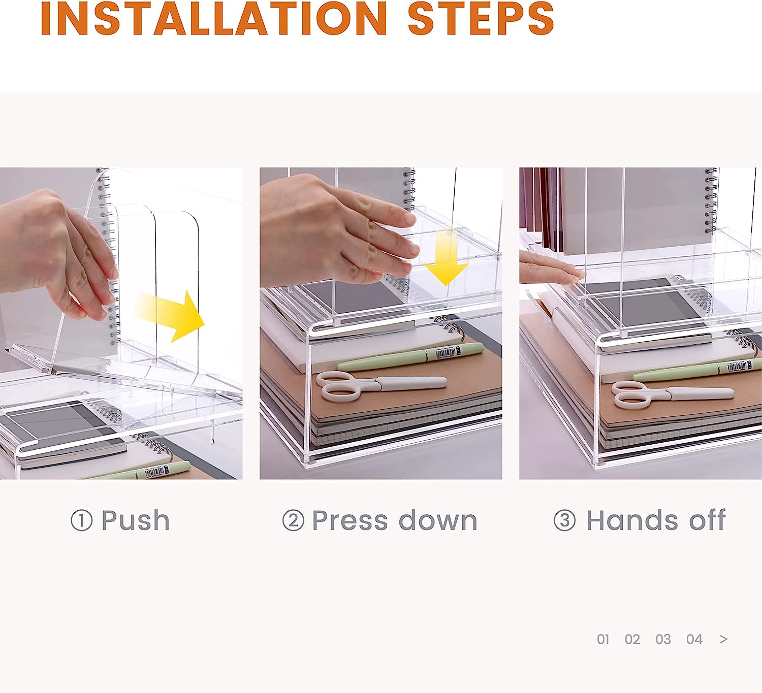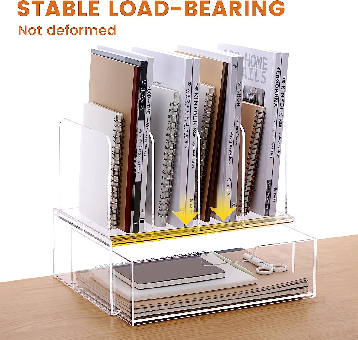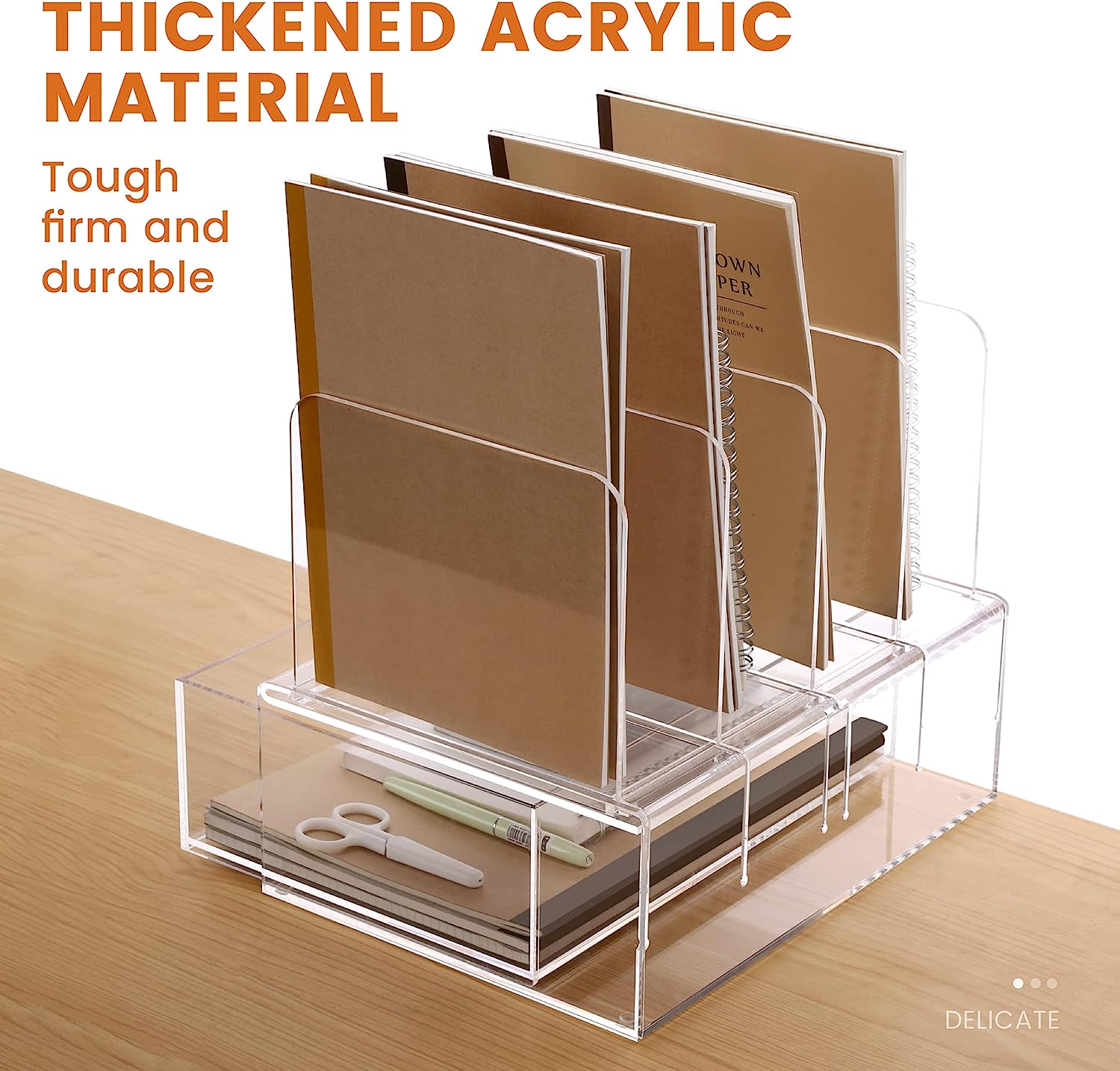 • High quality material: This desk organizer and accessories are manufactured using 0.4" extra thick clear acrylic, with tough weight-bearing capacity and durable desktop organization, Transparent acrylic materials make documents easy to find, so you can always find the information you need. we guarantee the finest quality and the best customer experience