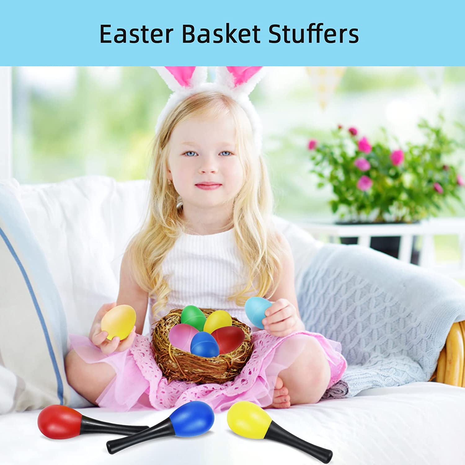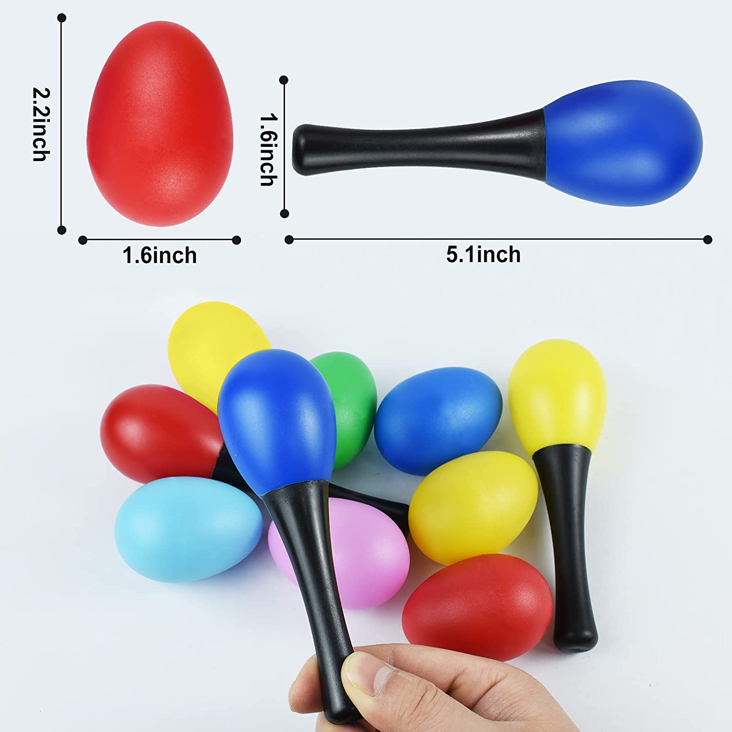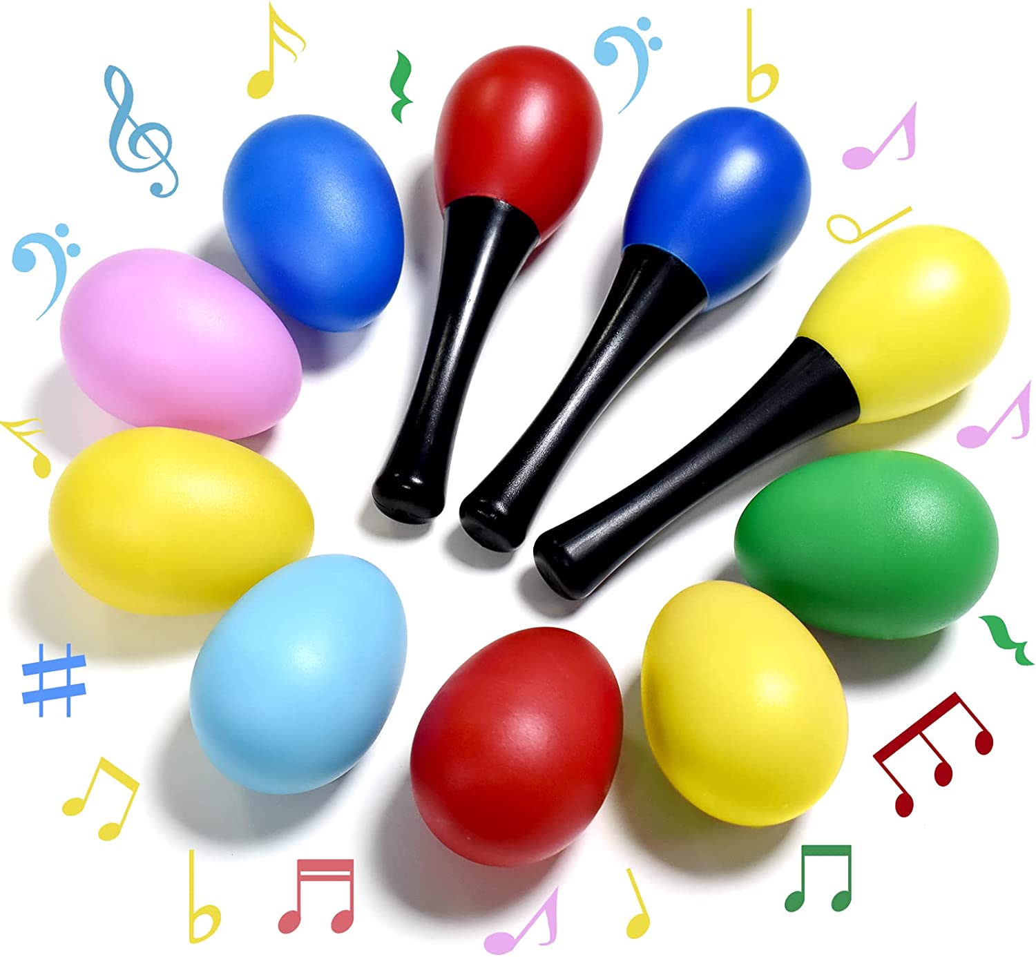 • CUTE DESIGN - The Easter egg shakers with 7 bright colors eggs and 3 shaker sand hammer. When you shake them, you hear a sound like a Mexican maraca, which can be make rhythmic shaker sounds for bring much fun to children. It is super cute Easter eggs maraca.