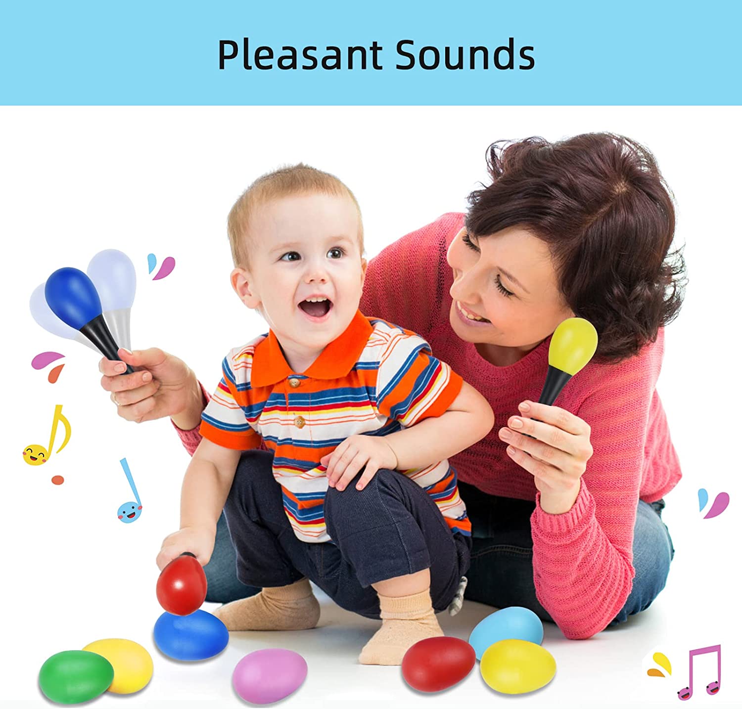 • FUN PERCUSSION INSTRUMENTS - The maracas egg shakers help kids to learn about the foundations of rhythmare in a fun and easy way. All kids will like chases them all over the house, loves shaking them, loves rolling them.