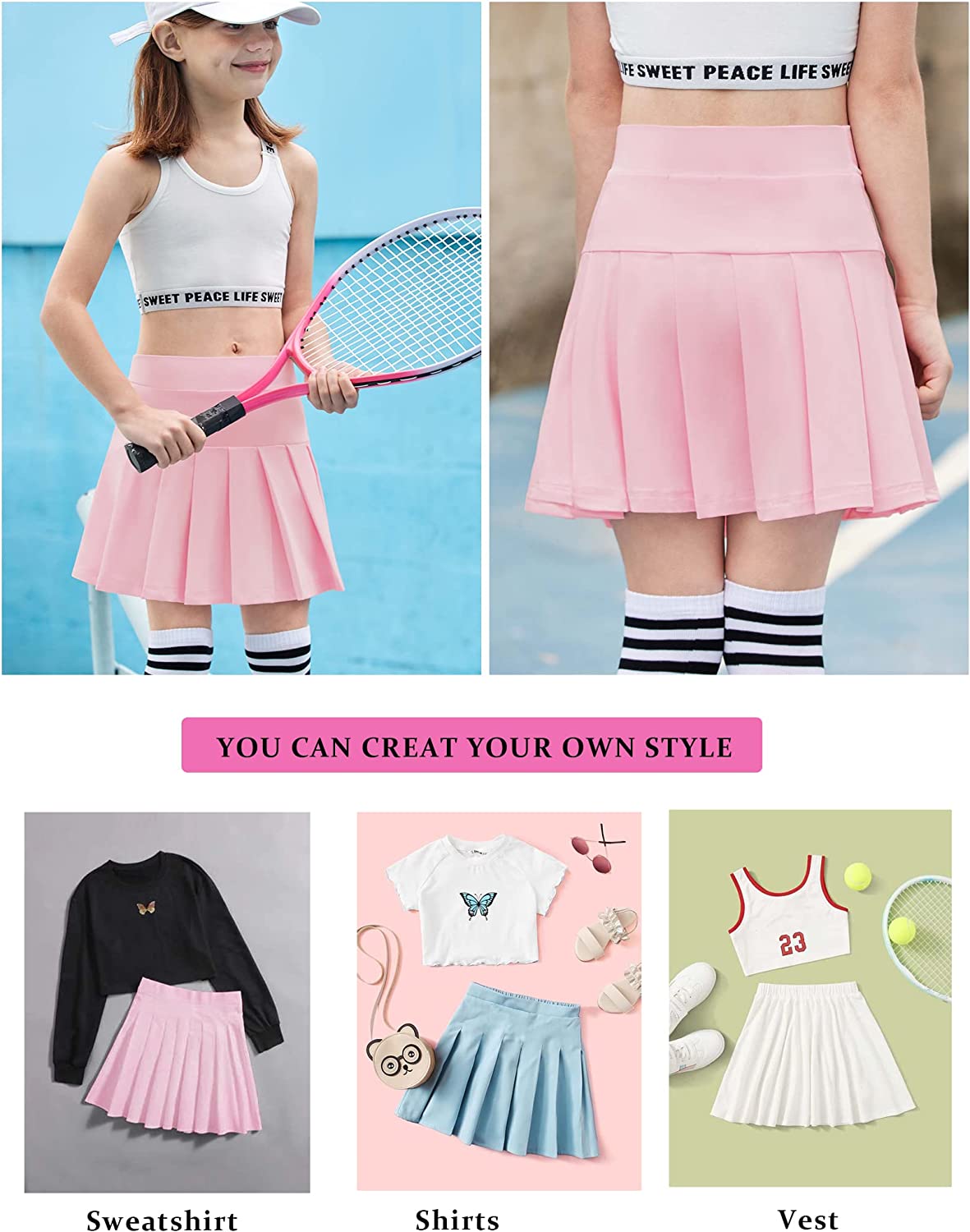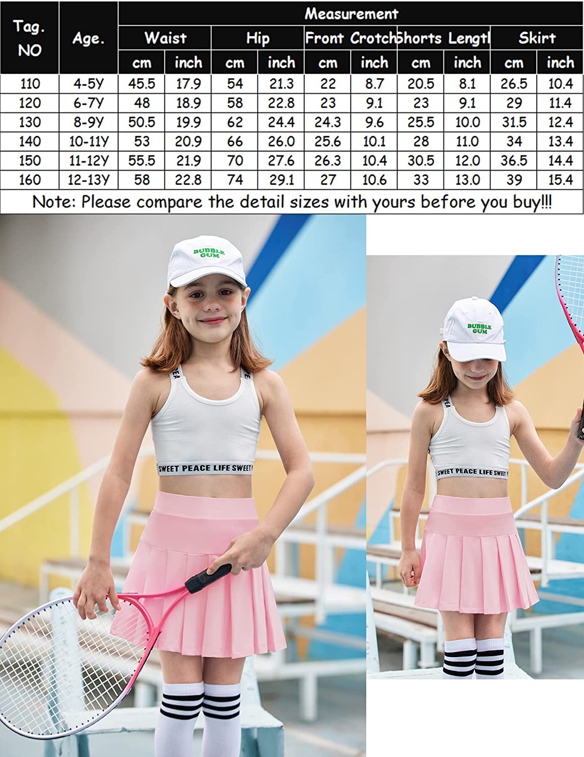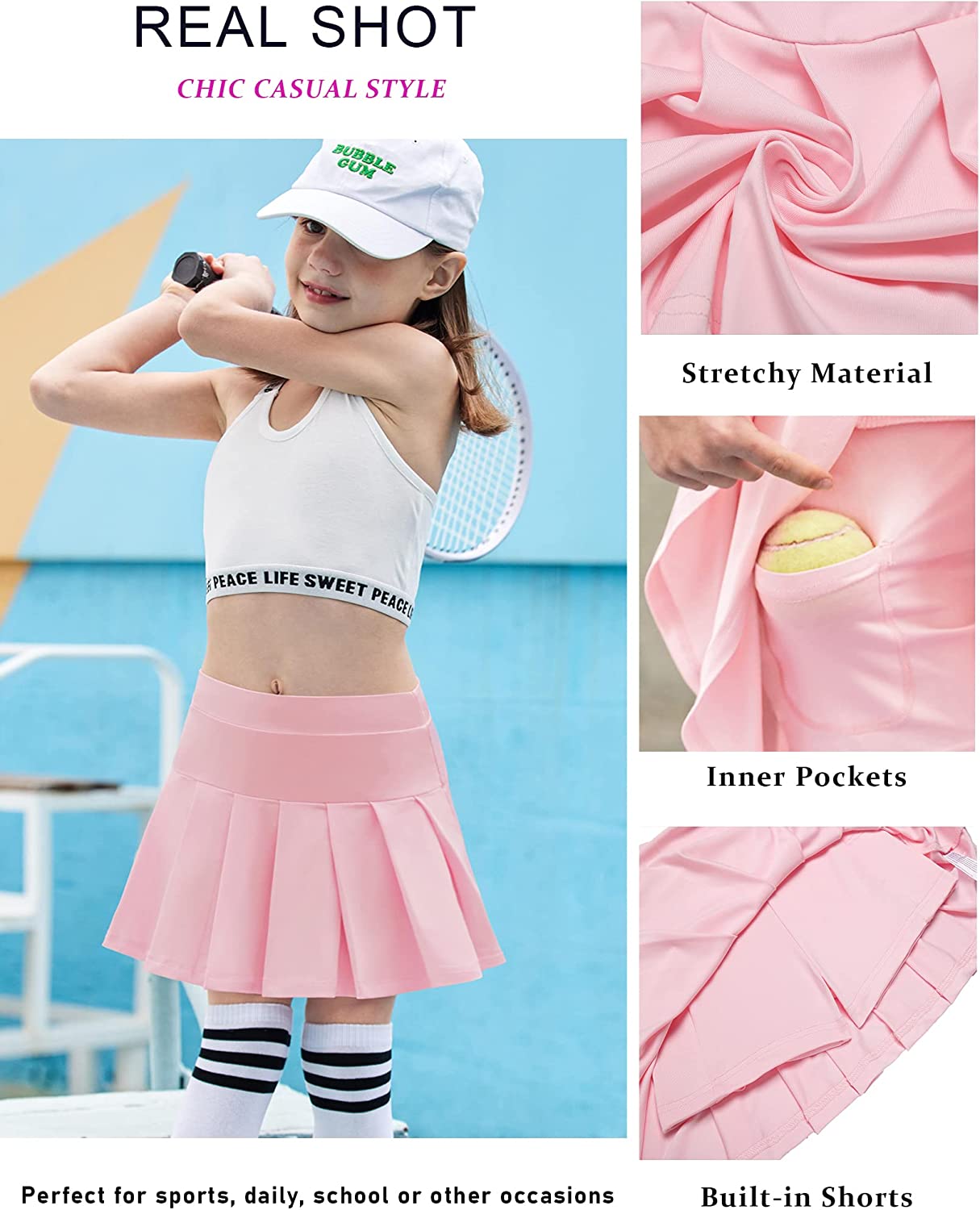 • Girls pleated skirt with built-in shorts to let your child stay covered while playing hard in this skirt, invisible pocket is great for storing keys, tennis balls, small balls, mobile phones, cards, hair clips, coins or other necessities
