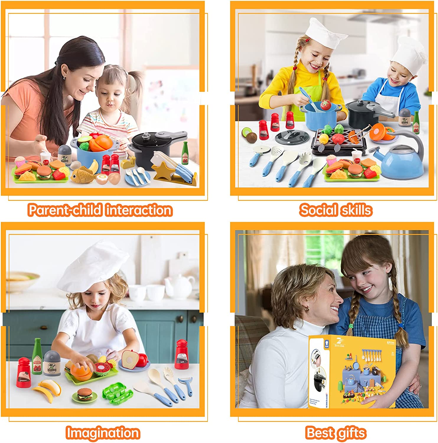 • 【Safe & Sturdy Material】Our cookware toy kitchen sets was made of ABS materials, they are drop-resistant, easy to clean without any BPA or harsh materials to ensure they are both safe and sturdy for everyday play. Our knife set is not easy to break off, both safe and made to handle daily space for kids