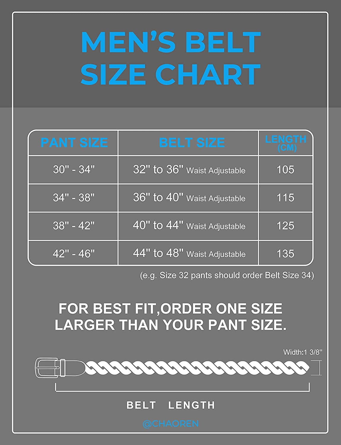 【NO RISK ORDER】: Our mission is to make you be fully satisfied with CHAOREN mens belts for jeans. Any product issue, feel free to contact us, we will offer exchange and returns any time without hesitation within 12 hours.