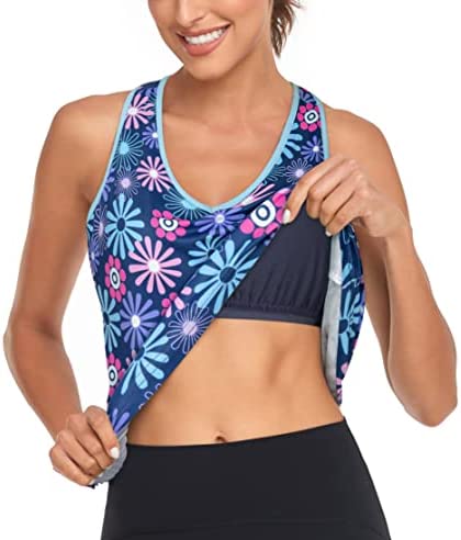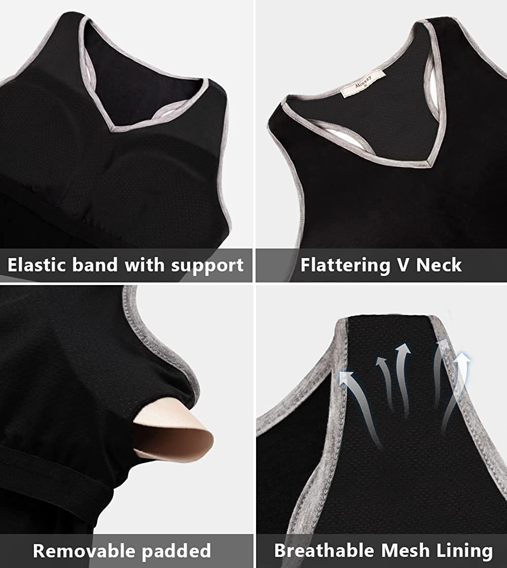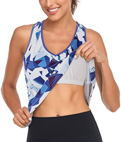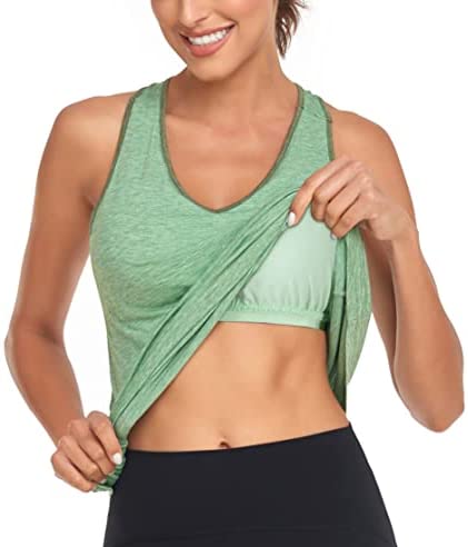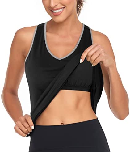 Hibelle Built in Bra Tank Tops for Women V Neck Racerback Workout Yoga Casual Shirts