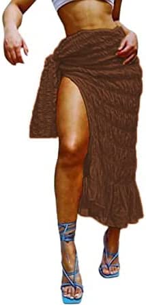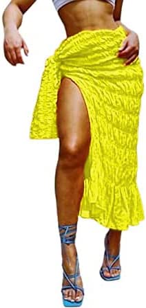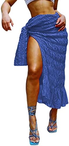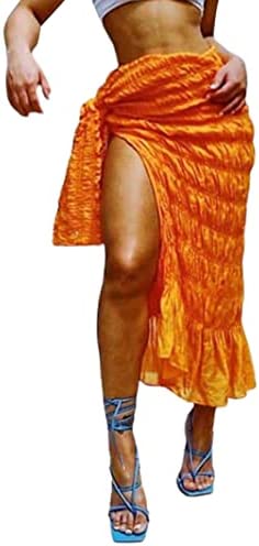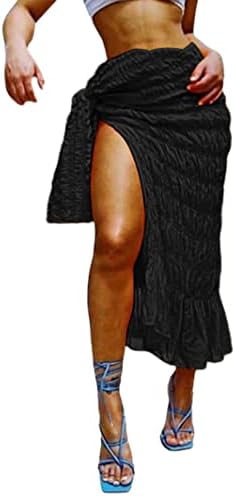 • Features: Sexy high waisted midi skirts for women, feature with split side design, ruffle hem, pleated ruched sarong skirt, knot waist cover up skirt, summer boho beach skirts