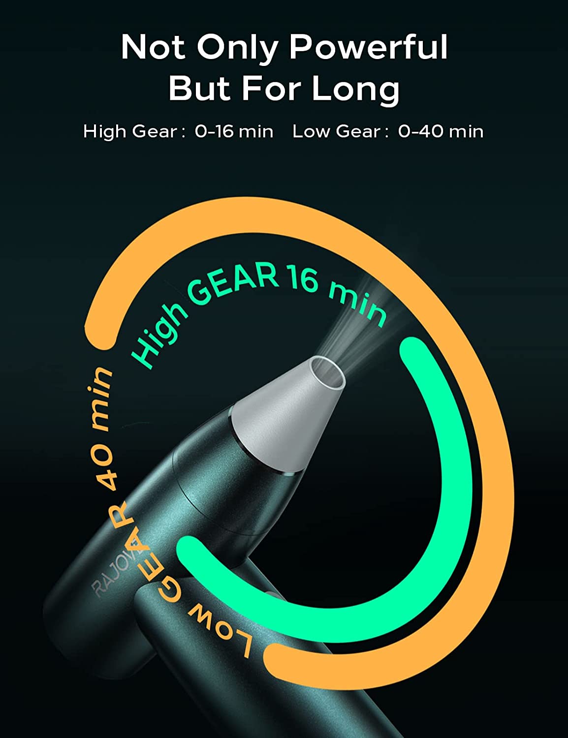 - [More Efficient Dust Removal] As you know, the canned type need to be replace constantly and the ordinary rechargeable air duster is not stronger enough for dust removal. RAJOVE air duster compressed air provides you the perfect solution. By adopting an innovative coreless & brushless motor, it provides 90% stronger blowing force than the ordinary, the motor speed is up to 150000 RMP while reducing the power consumption down to 20%! Make the complicated dust removal job easily done in 1 minute!