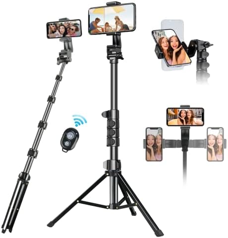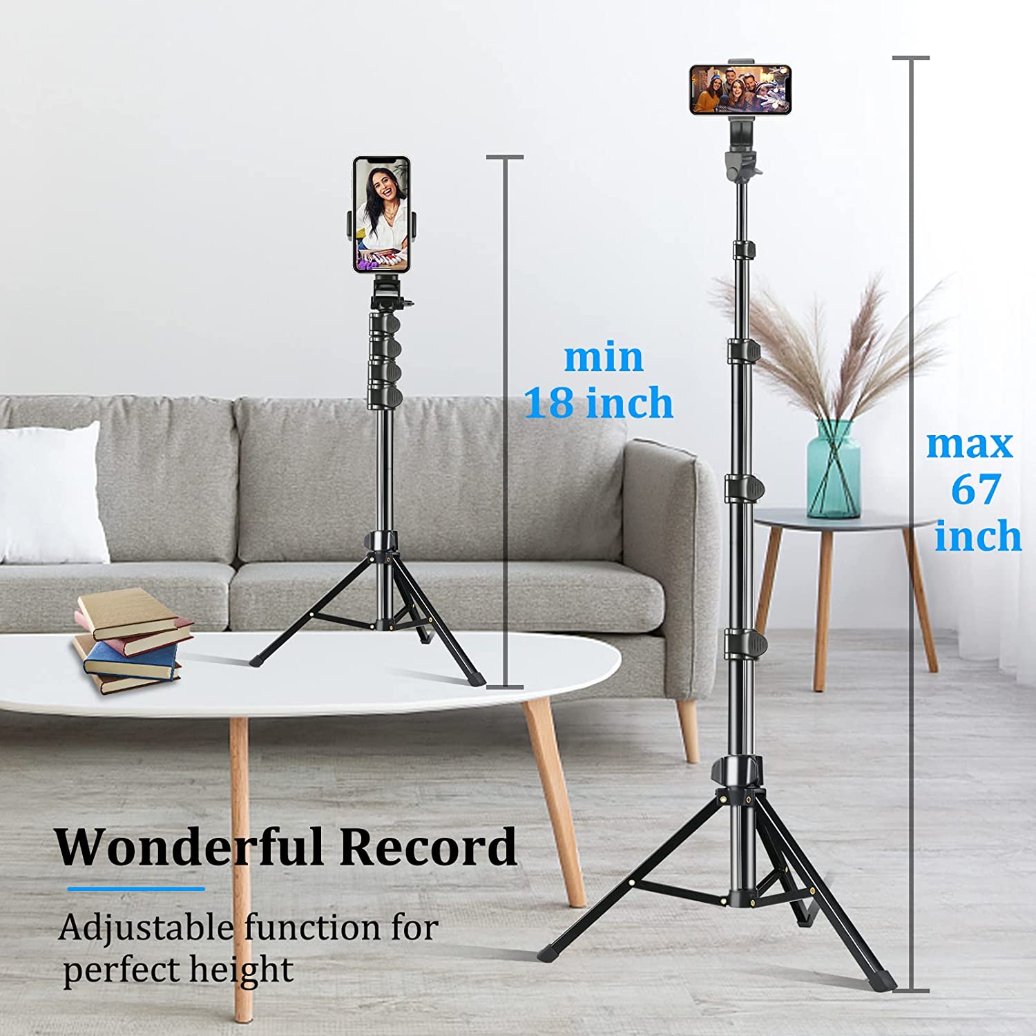 67" Phone Tripod, Extendable Tripod with Wireless Remote & Cell Phone Holder, Cell Phone Tripod Perfect for Selfies, Video Recording, Live Streaming, Compatible with Smartphone & Camera