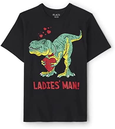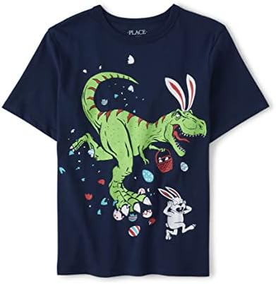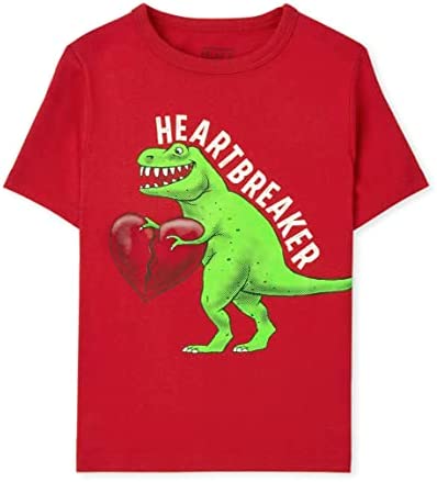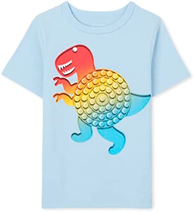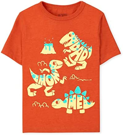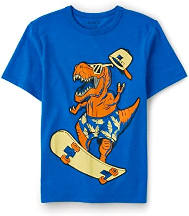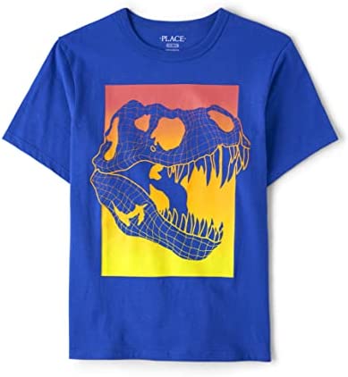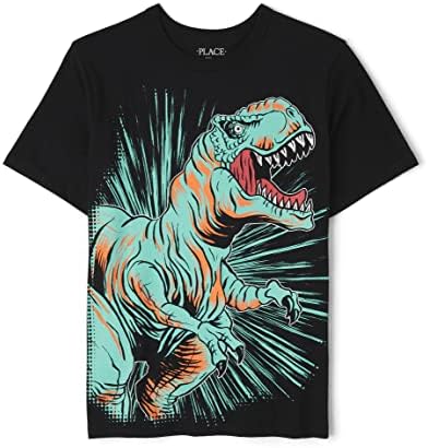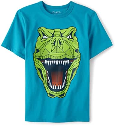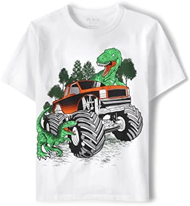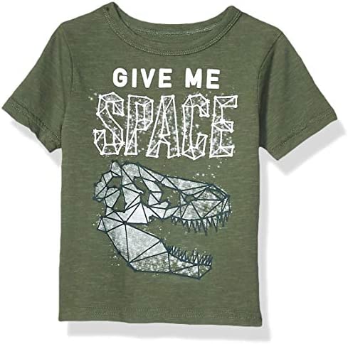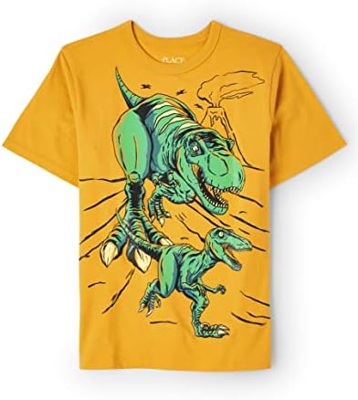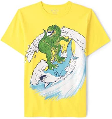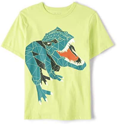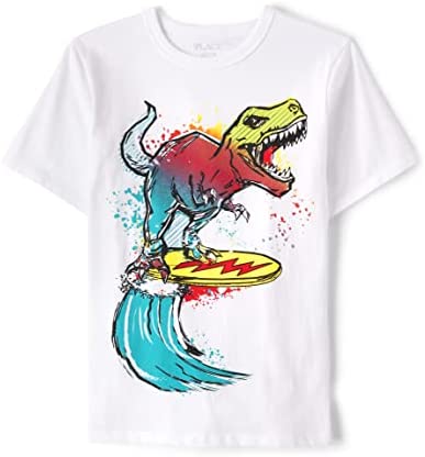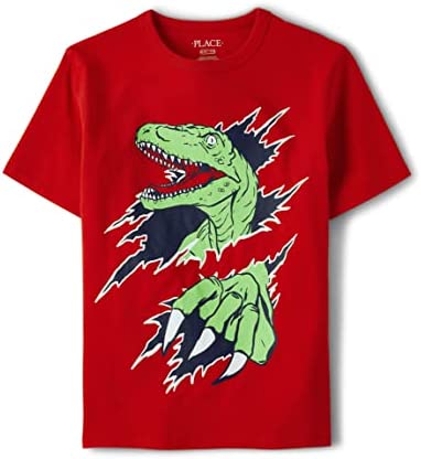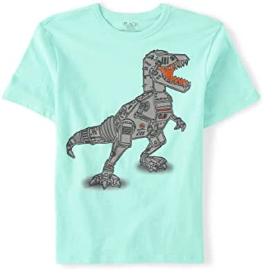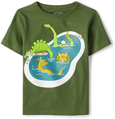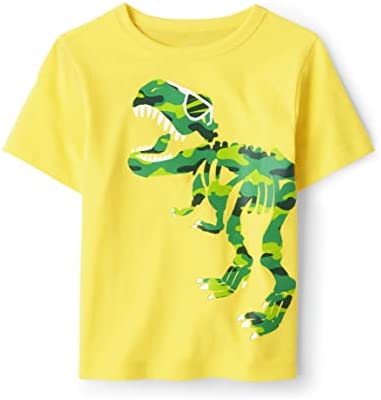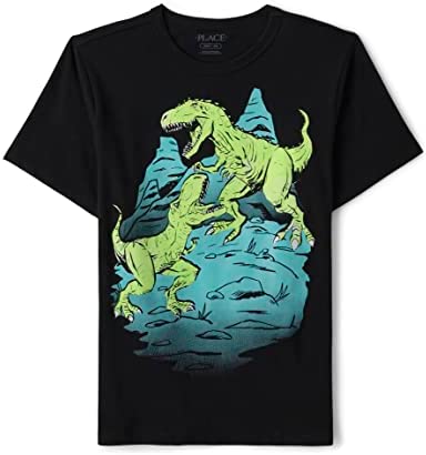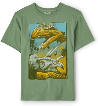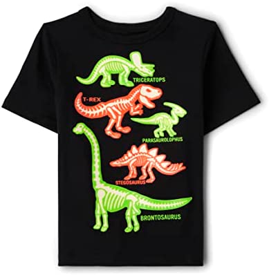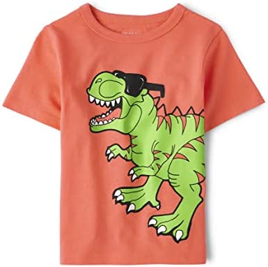 - DESIGN — Features short sleeves, rib-knit crew neck and dinosaur graphic design at front