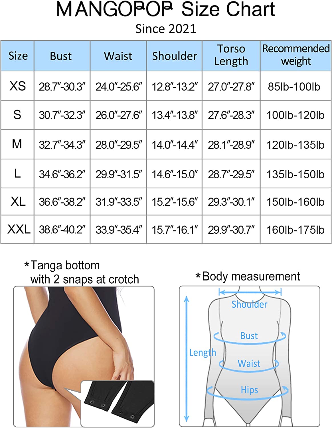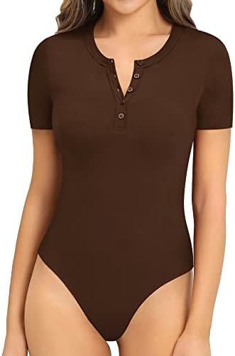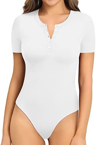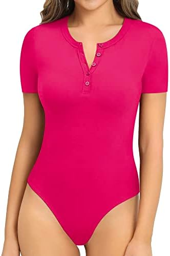 MANGOPOP Women's Round Neck Button Down Short Sleeve Long Sleeve Bodysuit Slim Fit Tops