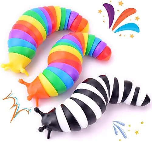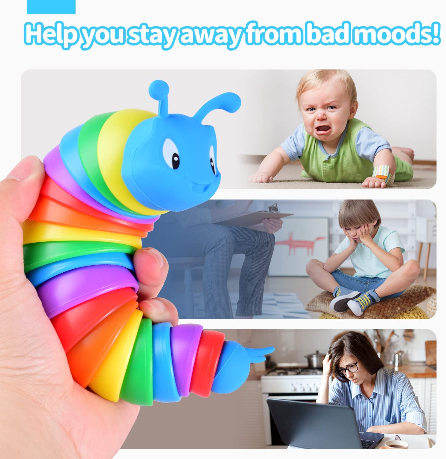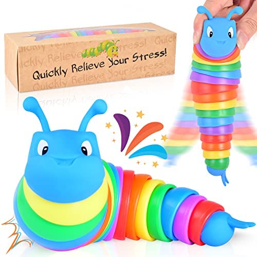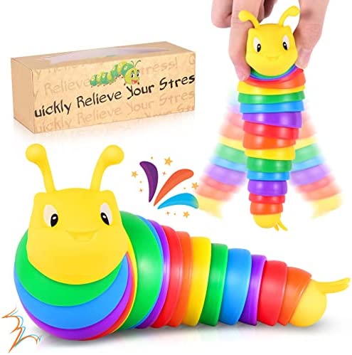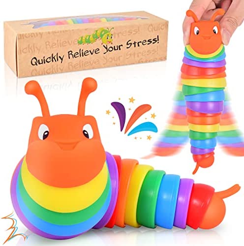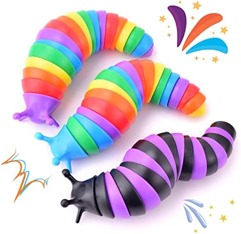 Fidget Slug Toy, Autism Sensory Toys for Autistic Children 3-12 Years Old Kids Toddler, 3D Printed Rainbow Cute Worm Fidgit with Anxiety Relief Therapy, Finger Bug Gift for Girls Boys Birthday