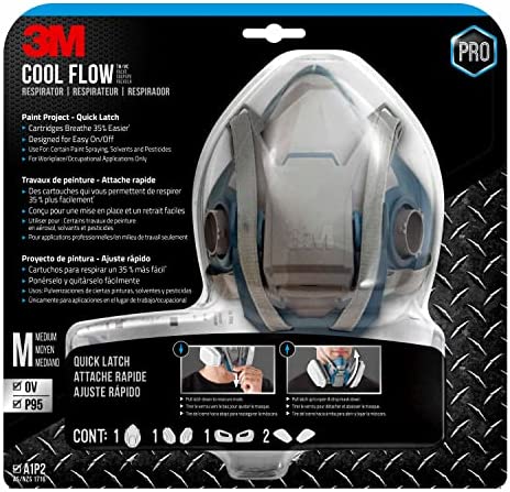 The medium 3M Performance Respirator Paint Project 6211 helps provide protection against particles and certain organic vapors with the convenience of an all-in-one kit. Designed for professionals, this reusable respirator is excellent for spray painting and projects that require solvents or pesticides. The swept-back design of the 3M Organic Vapor Cartridges allow a wide field of view and, when combined with the provided filters, can help provide effective particulate filtration on the job. When you're handling potentially harmful chemicals, it's important to help protect yourself¬—so make sure to pick up the 3M Performance Respirator Paint Project 6211.