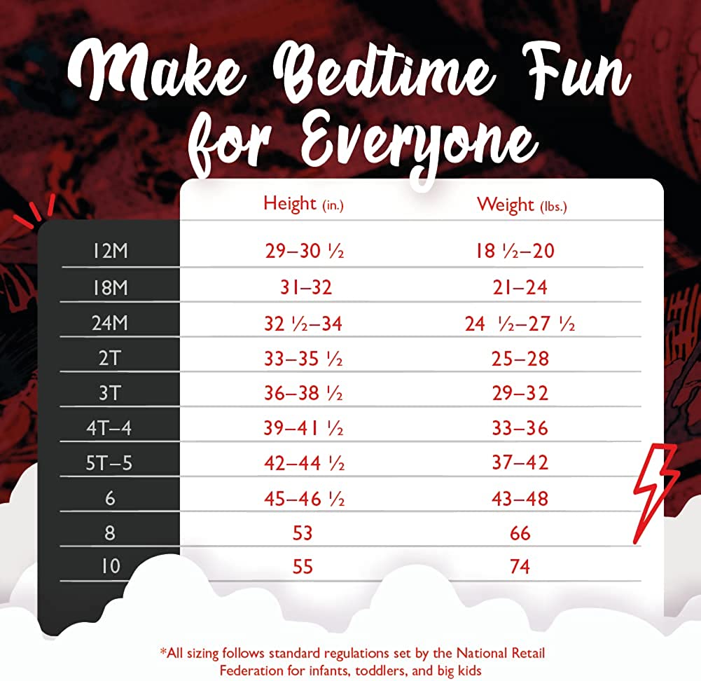 COMFORTABLE SLEEPWEAR: The easy on-and-off design on these little- and big-boys’ superhero pajamas makes bedtime a snap, and the footless bottoms leave feet free for easy play. These pj’s are durable and comfortable no matter the season.