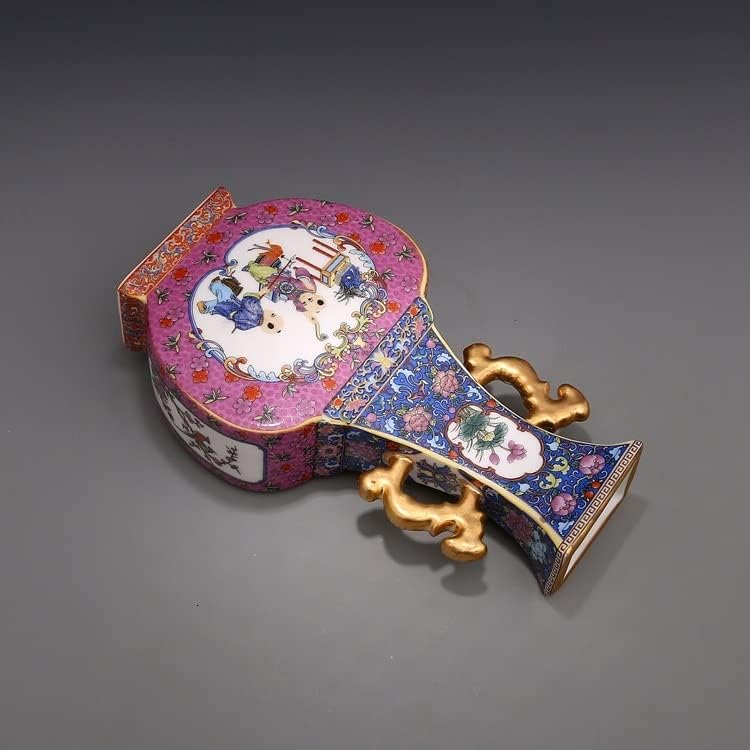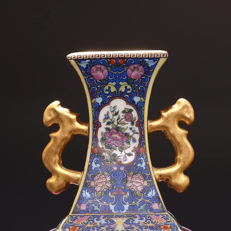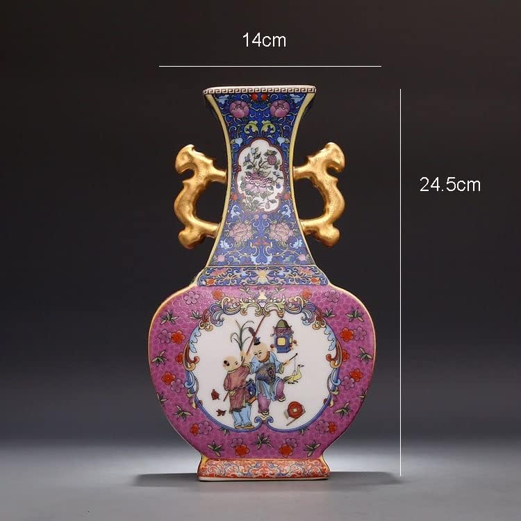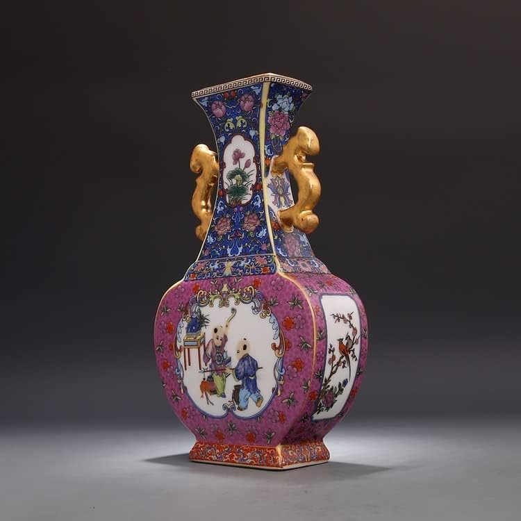 ZSEDP Jingdezhen Ceramic Antique China Porcelain Double Eeared Enameled Square Flat Vase