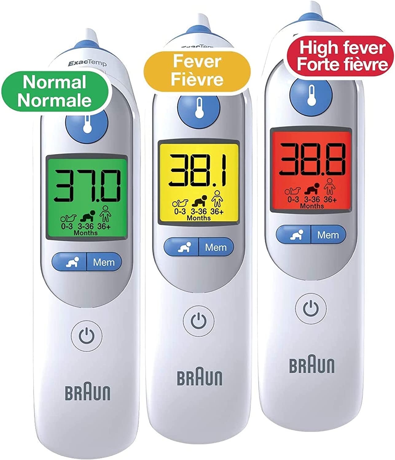 • Braun ThermoScan Electronic Ear Thermometer measures temperature in the ear in just one second and beeps when ready.