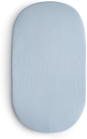 Made from 100% muslin cotton, our cozy, extra soft bassinet crib sheet is pre-washed for softness against baby's delicate skin. Muslin fabric stays breathable while keeping your baby warm and cuddly.