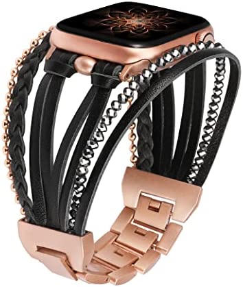 So Elegance and Eye-catching Design: Vintage elegance multilayer bracelets are made of high-quality faux leather and hand-woven, with high quality solid stainless steel links for easy resizing, won't pilling or peeling off. Wearing it will make your iwatch more fashionable and youthful. Exactly what you are looking for as far as a both casual and Bohemian style watch band.