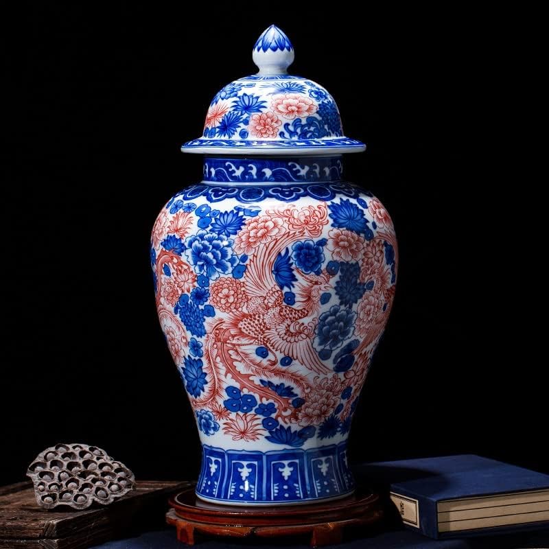 RENSLAT Jingdezhen Porcelain Antique Jar Blue and White Glaze Red General Tank Glaze