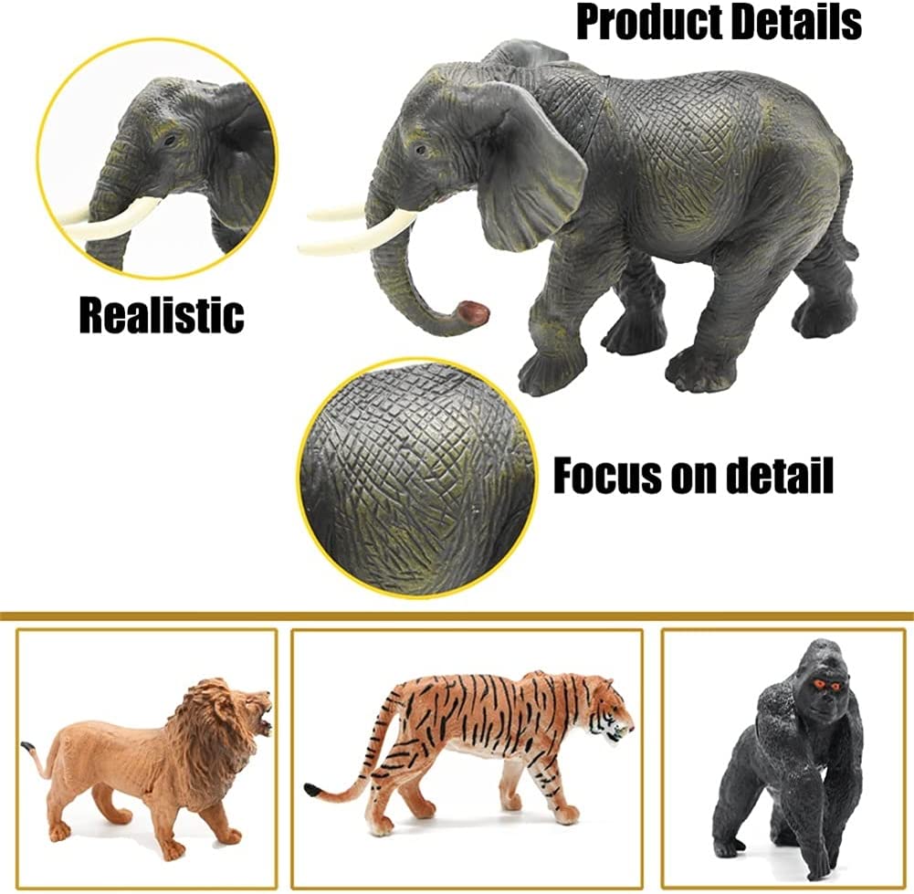 • REALISTIC SAFARI ANIMALS: 12PCS unique non-repeating plastic jungle animals with vibrant colors, measure about 4.8 to 6.3 inch in length. Including tiger, lion, zebra, gorilla, elephant, crocodile, giraffe, cheetah, rhino/rhinoceros, camel, hirola, hippo.