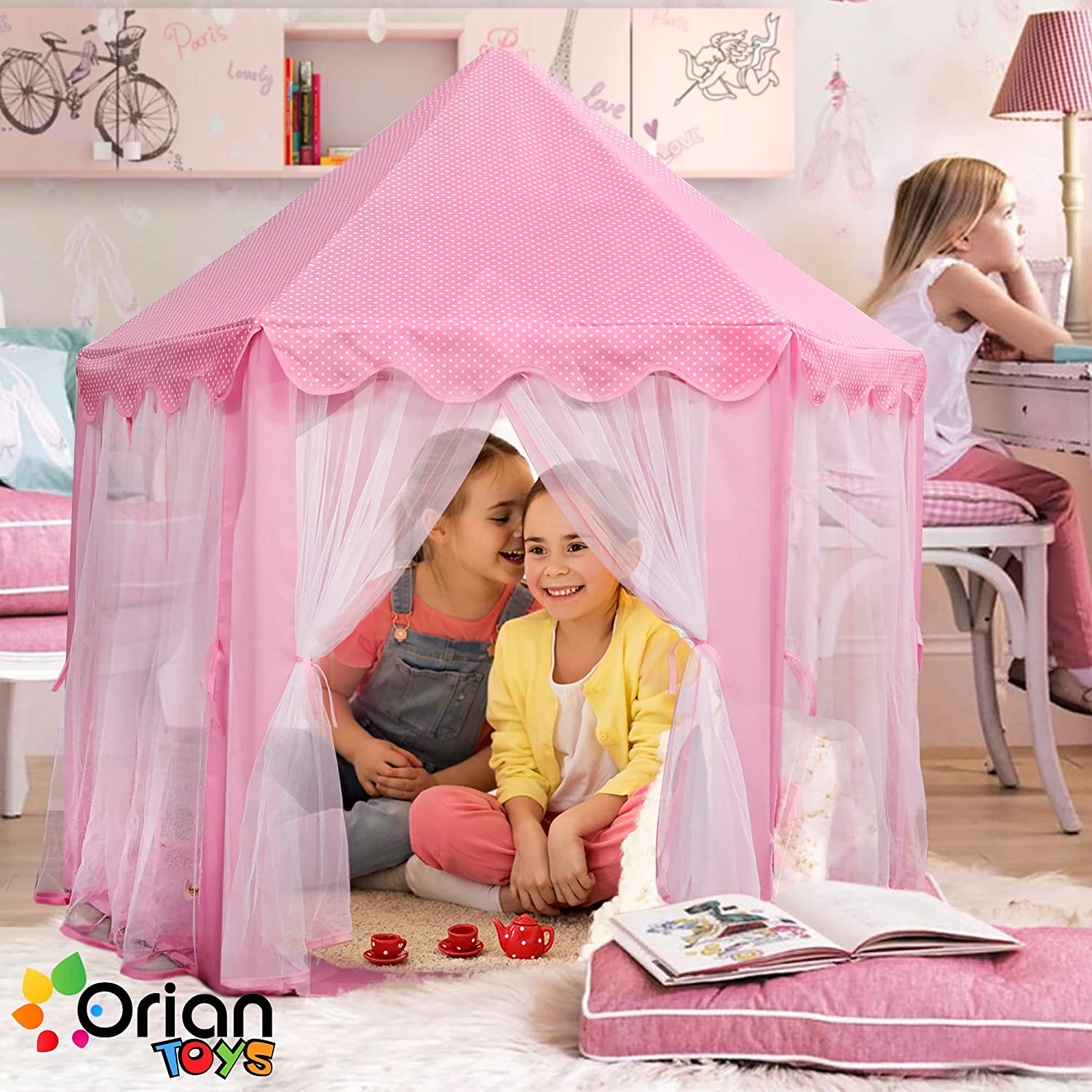 • 1 YEAR HASSLE-FREE WARRANTY – On top of the 30-day money back guarantee we provide you, we also offer you a complete 1-year warranty! If for some reason you are not satisfied with your purchase just let us at ORIAN know! We will provide a prompt and helpful solution, offering you a full refund or a new Orian Princess Castle Playhouse Tent!