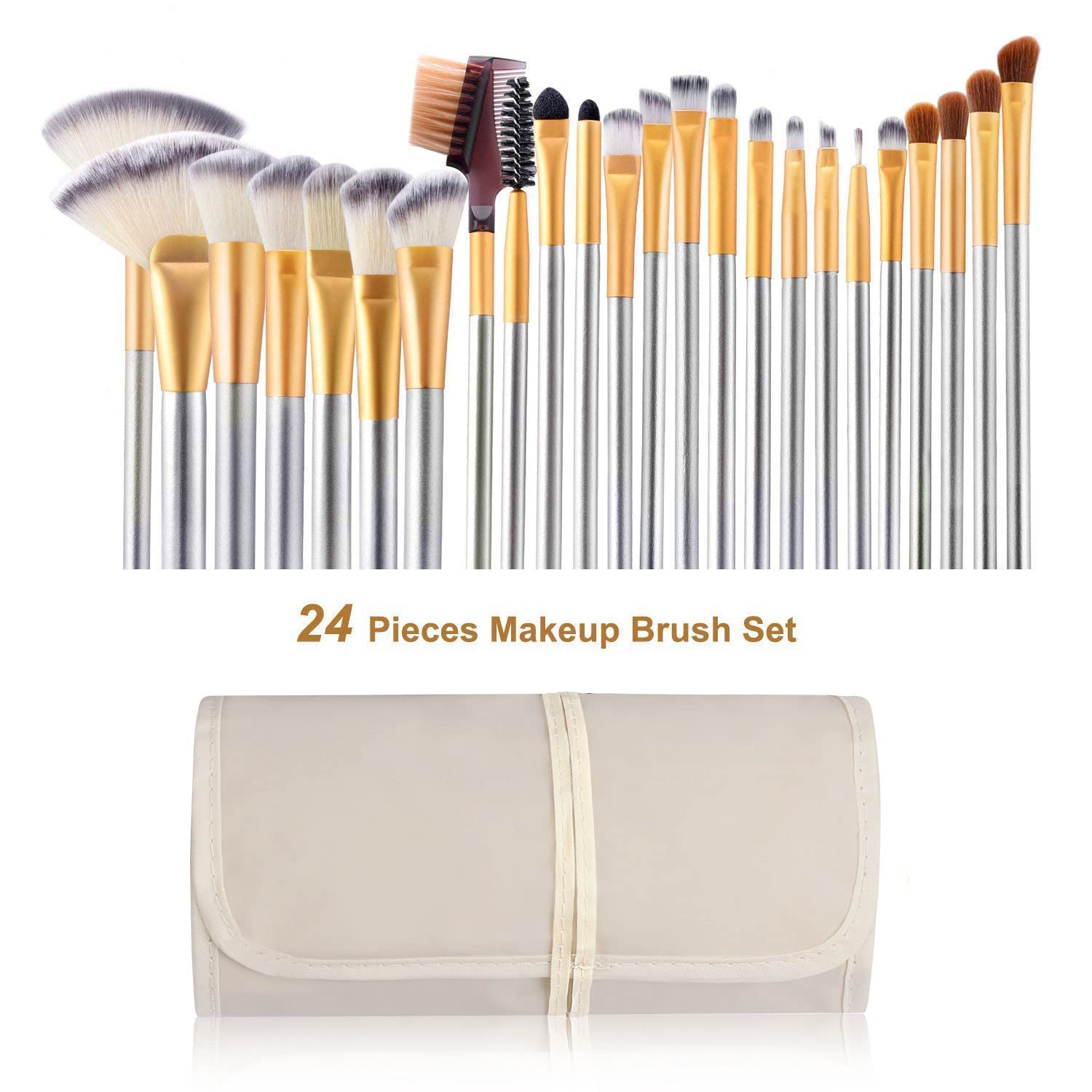 Make up Brushes, VANDER 24pcs Premium Cosmetic Makeup Brush Set for Foundation Blending Blush Concealer Eye Shadow, Cruelty-Free Synthetic Fiber Bristles, Travel Makeup bag Included, Champagne