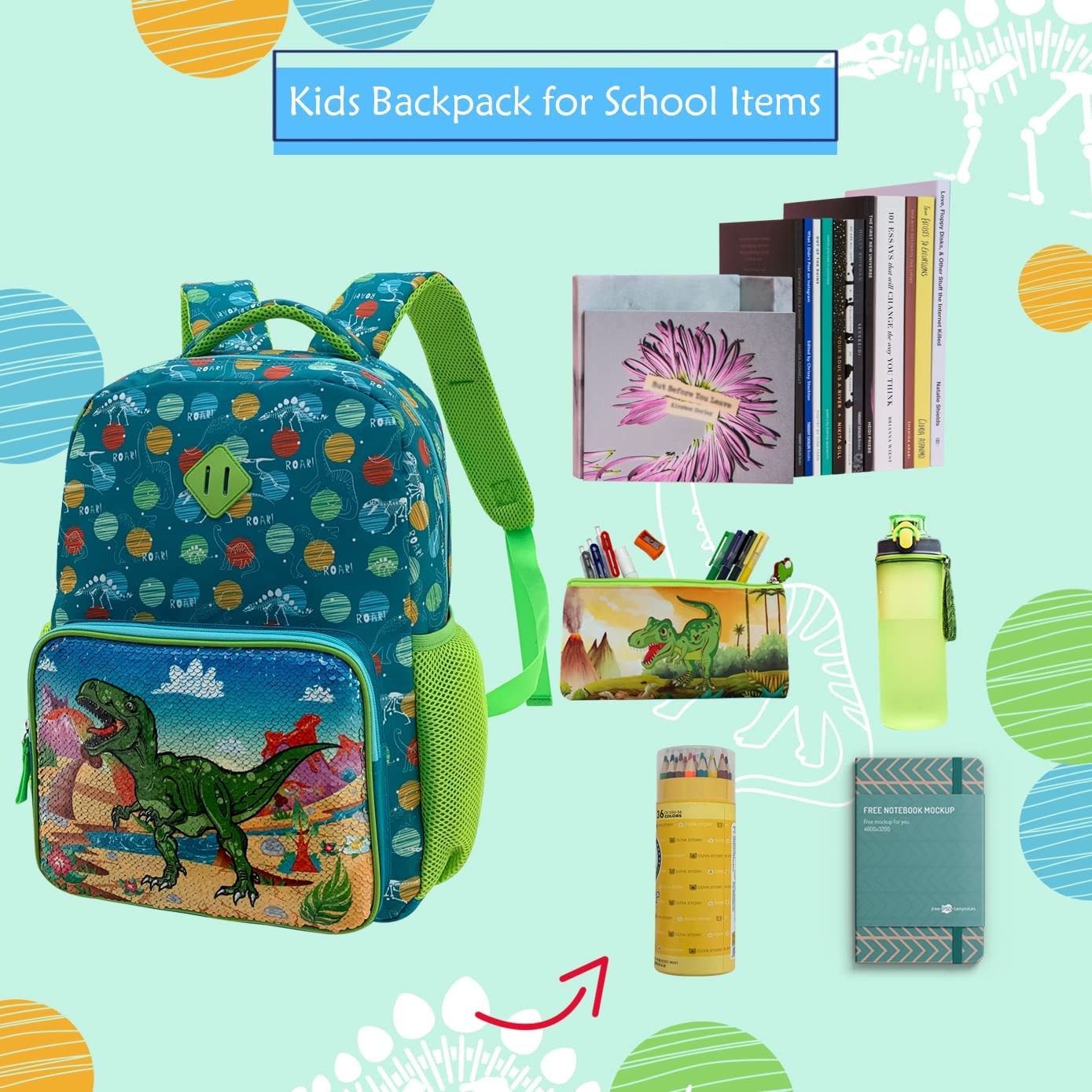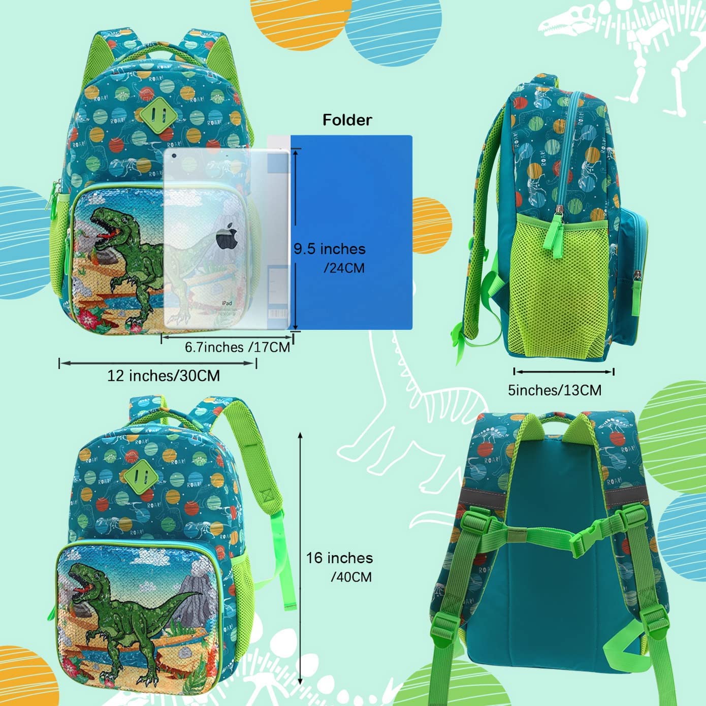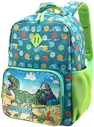 • ⭐【Magic Sequins Kids Backpack】: Reversible sparkly sequins with two different dinosaur patterns on front pocket by swiping the sequins. It is cute and attractive for little boys in kindergarten or elementary preschool ages from 4-10 years old.