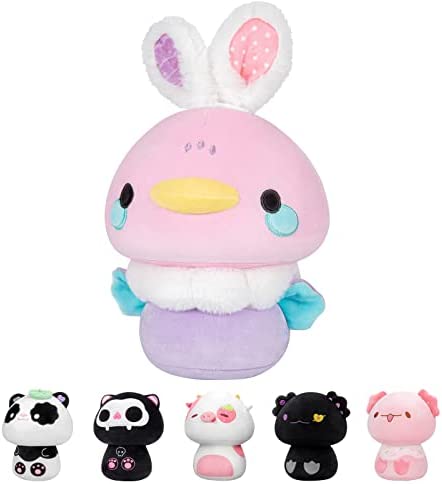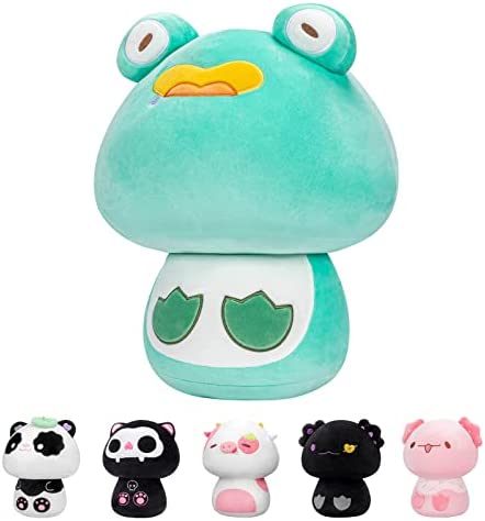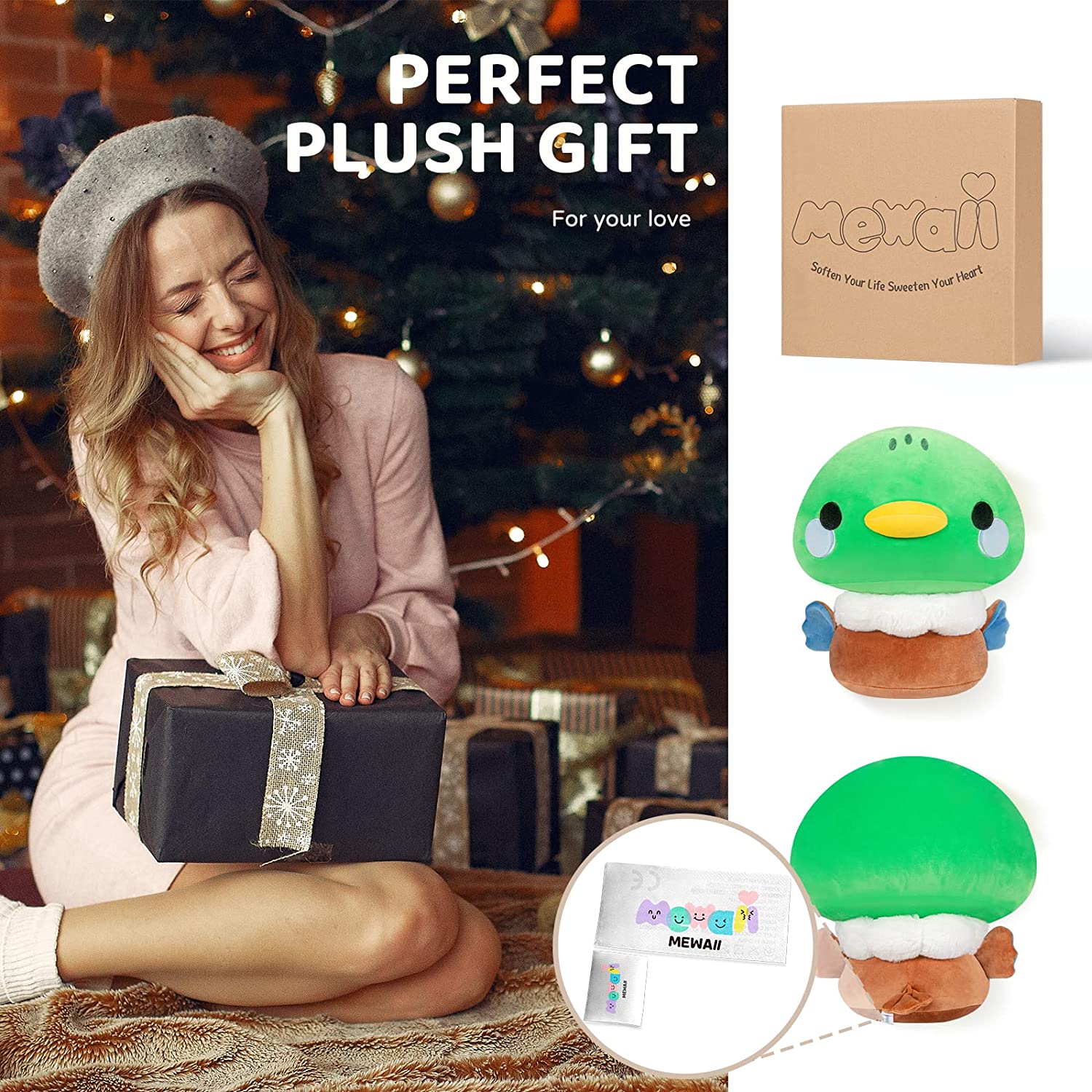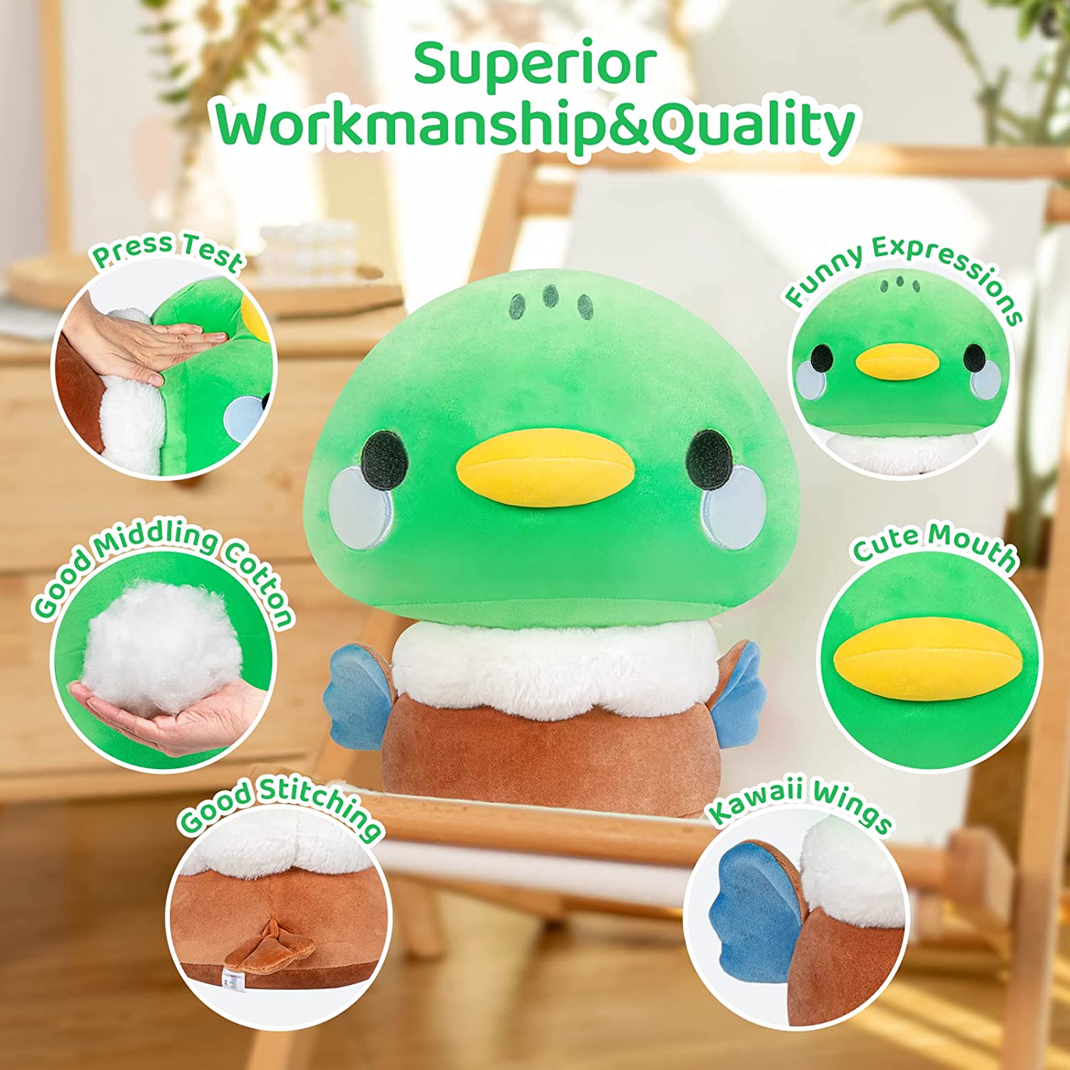 Mewaii 8” Mushroom Plush, Cute Green Duck Plush Pillow Soft Plushies Squishy Pillow, Duck Stuffed Animals Kawaii Plush Toys Decoration Gift for Girls Boys