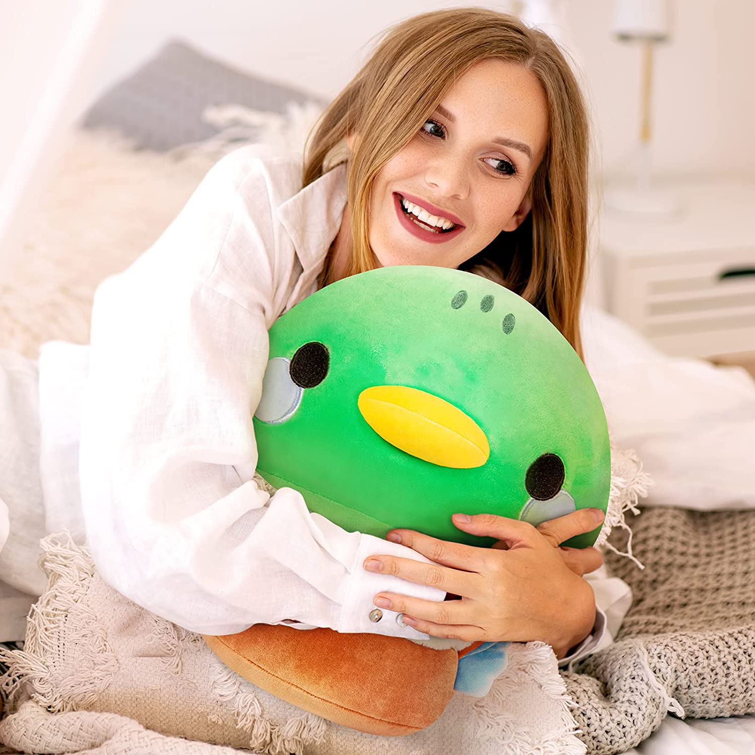 • Green Duck Pillow Original Design: With its lovely and lifelike duck stuffed animal pillow, a smiling appearance, and soft fabric. All bad emotions and work stress will disappear when you embrace stuffed toys! This duck plush can accompany you or your friends through lonely times.