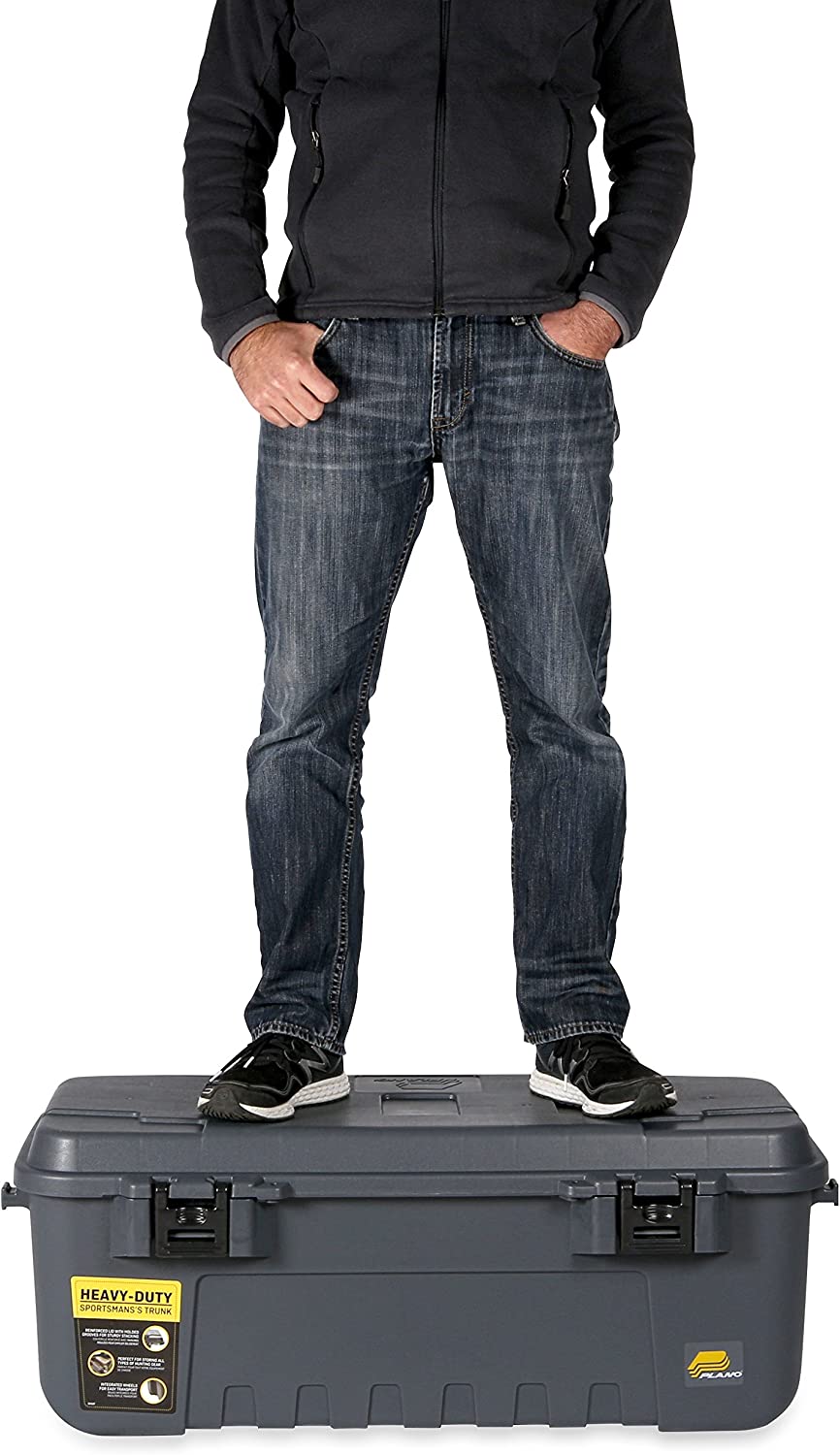 • PLANO SPORTSMAN STORAGE TRUNK WITH WHEELS: Store or take your tools, hunting gear, ammunition, camping supplies, and more on the go with the Plano Sportsman Trunk with Wheels. With a 108-quart total capacity, the possibilities are endless.