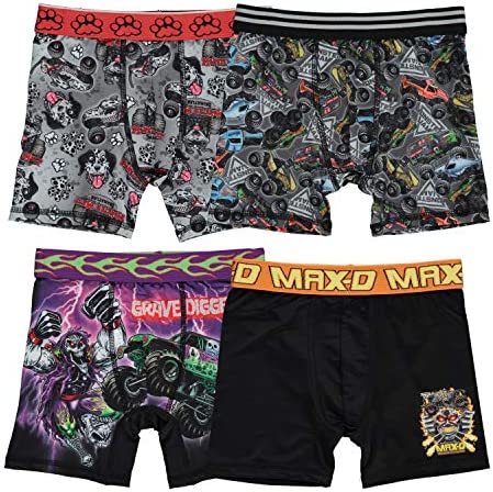 Monster Jam Assorted 4 pack athletic boxer brief for boys made with our "cool-craft" Yarn for cooling soft hand feel, vibrant colors, max stretch and wicking properties