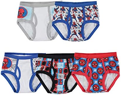 Five pairs of classic brief-style underwear in Spider-Man motif