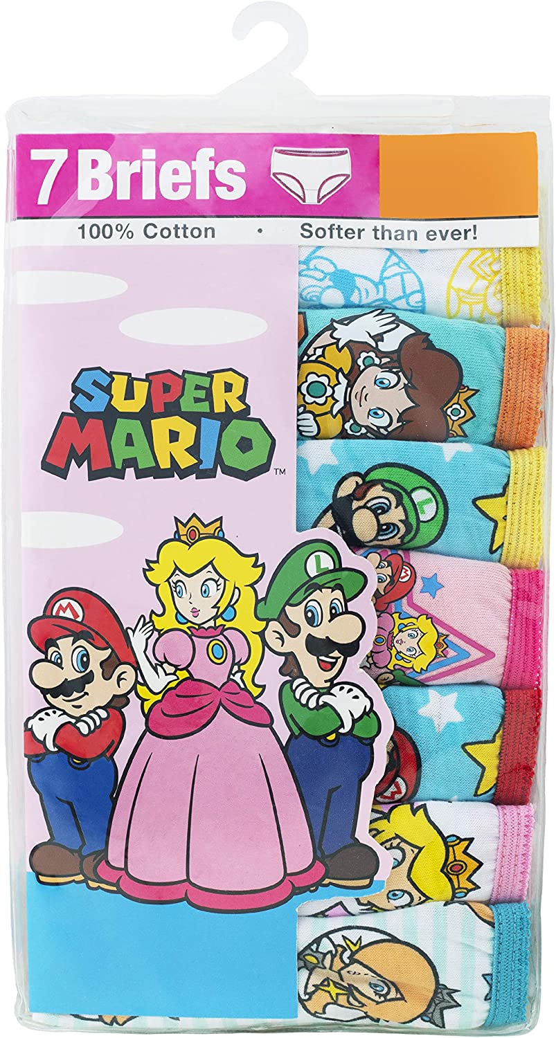 Nintendo Girls' Super Mario 7-Pack 100% Combed Cotton Underwear Available in Size 4, 6, and 8