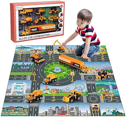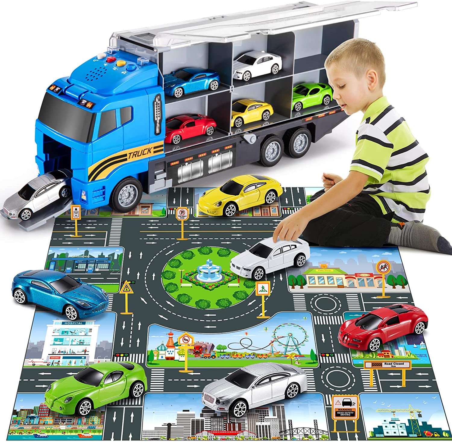 TEMI Toddler Toys for 3 4 5 6 Years Old Boys, Transport Cars Carrier Set Truck Toys w/Play Mat, Die-cast Vehicles Truck Toys Cars, Alloy Metal Race Model Car Toys Set for Age 3-9 Kids Boys & Girls