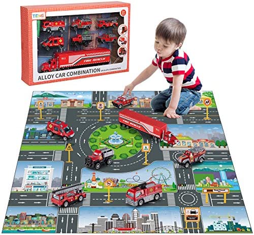 • SIMULATION SCENE PLAY MAT - This carpet is made of soft non-woven fabric, environmentally friendly, not easy to harde, foldable storage and increase the friction with the ground, make the vehicle smoothly on it. Carpet shows us a colorful real scene, including roads, buildings, playgrounds, etc. clear pattern, not easy to fade. It is large enough for 2 to 4 child players to spend hours of gaming fun together. Active Carpet Size: 32 "X 27".