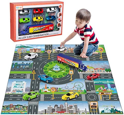 • KIDS RACE CAR TOYS SET - Equipped with 1 x foldable play mat, 1 x multi-function transport cars, 6 x different colorful die cast race cars and a set of road signs. It is highly recommended for kids aged 3 and above to create endless happy times!