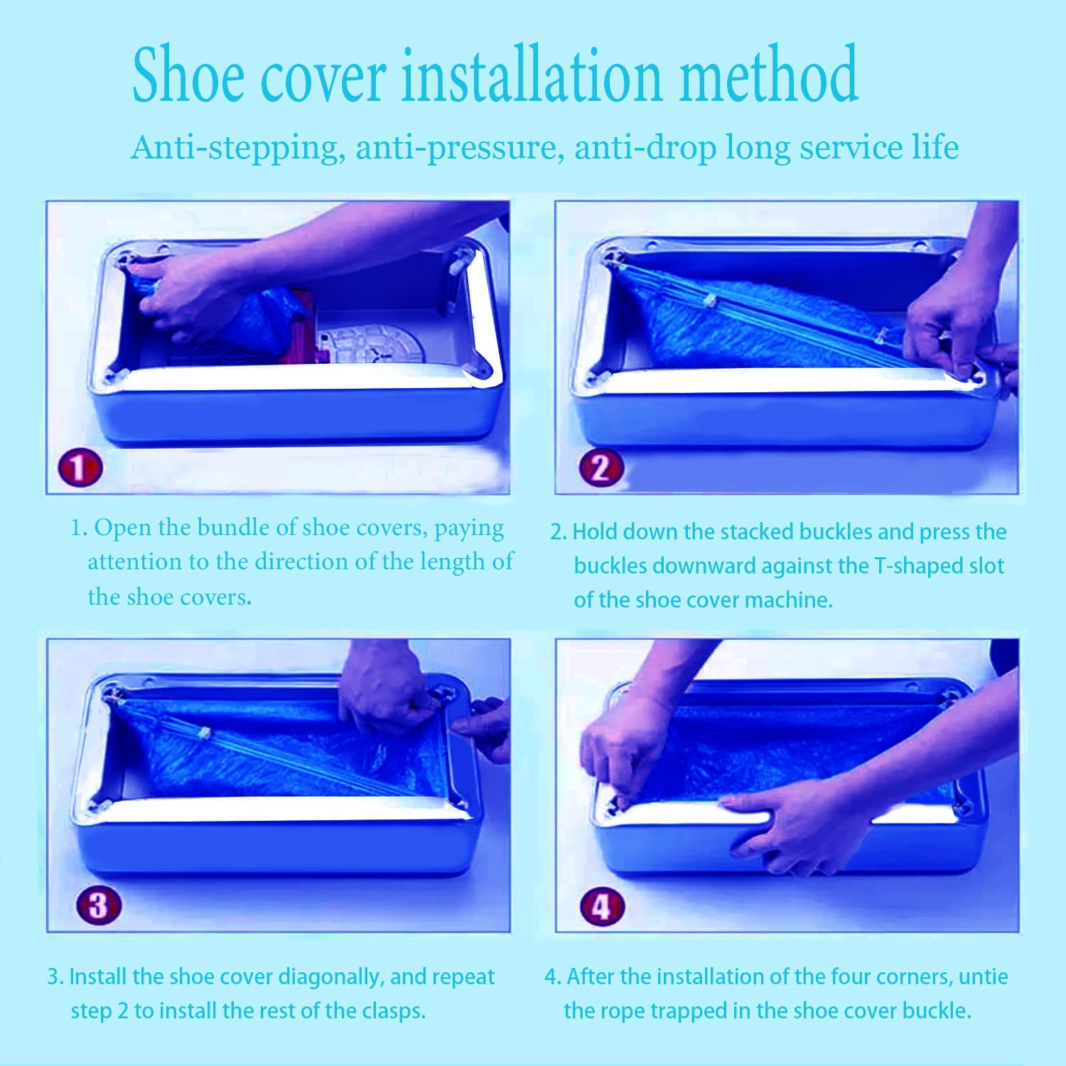 • 【Installation Method & Easy To Use】 When installing the shoe cover, all four T-buckles of the shoe cover machine should be pressed down and then popped back up. After installation, be sure to check the four corners of the shoe cover machine the first T-buckle above the shoe cover to the middle and keep a distance of 1mm from the T-buckle below. Gently step on the pedal, the shoe cover will automatically release. When the shoes are too big, you need to use to hand assistance.