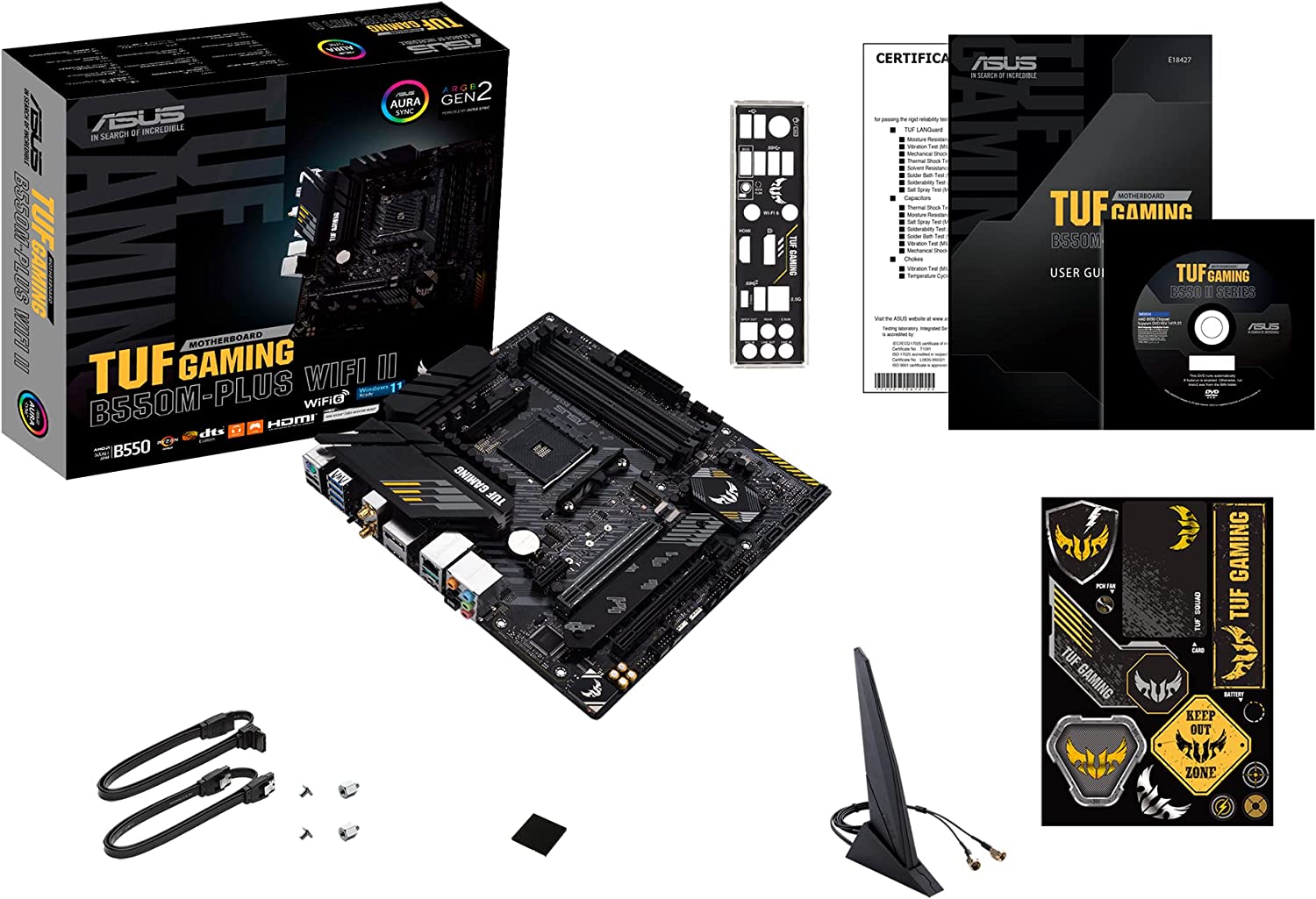 ASUS TUF GAMING B550M-PLUS WiFi II AMD AM4 (3rd Gen Ryzen) microATX gaming motherboard (PCIe 4.0, WiFi 6 2.5Gb LAN, BIOS FlashBack, HDMI 2.1, USB 3.2 Gen 2, Addressable Gen 2 RGB header and AURA Sync)