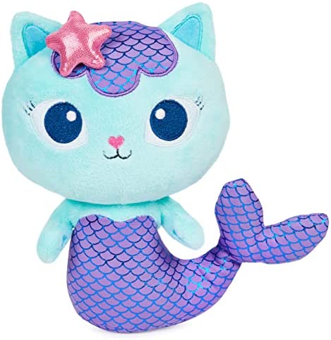 Bring home the irresistible kitty characters from Gabby’s Dollhouse with the Purr-ific Plush! This adorable MerCat plush toy features both metallic mermaid fabric and super soft fabric, and embroidered details, bringing Gabby’s cat-tastic friend to life. At 8-inches tall, MerCat is the perfect size for cuddles or playtime, at home or on-the-go! From Gabby’s best pal Pandy Paws’ signature pointy ears, Cakey Cat’s sweet sprinkle details, Baby Box Cat’s polka dot dress and more, each Purr-ific Plush stuffed animal (each sold separately) looks just like the character from the NETFLIX original series. Kids can collect all of the cuddly soft toys from the show and use their imagination to create their own adventures with their new plush pals. Snuggle up with the Gabby’s Dollhouse MerCat Purr-ific Plush!
