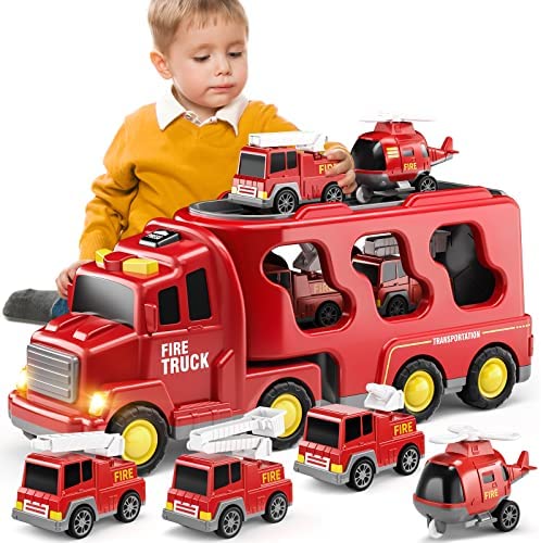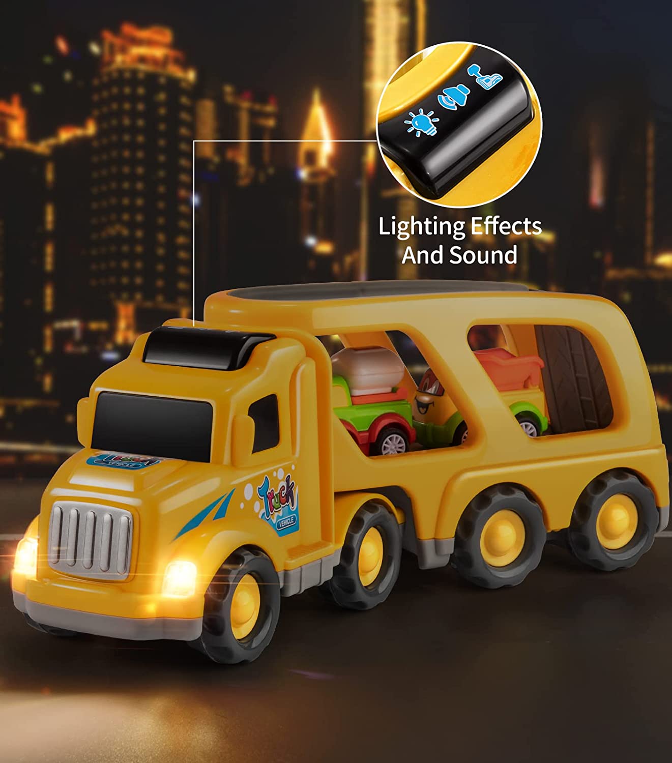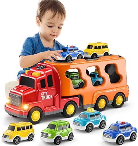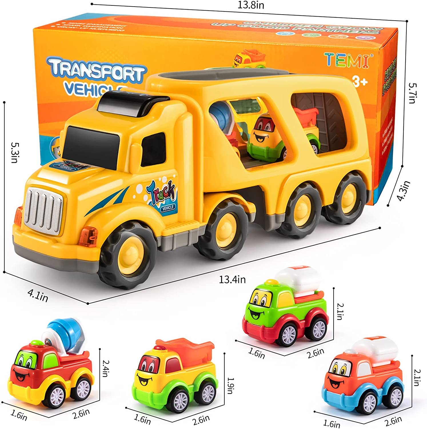 TEMI Construction Truck Toys for 3 4 5 6 Year Old Boys, 5-in-1 Friction Power Toy for Kids 3-5, Carrier Truck Cars for Toddlers 3+, Kids Toys Set for Age 3-9, Christmas for 3+