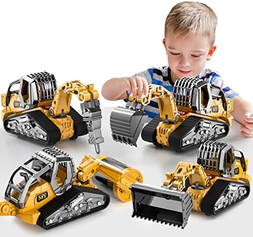 • Friction & Turnable & Removable: Just push and let it go,the hauler truck will carry four small engineering vehicles and set off! The head of the big carrier can also turn. After reaching, separate the cab and the traction compartment, and then open the tailgate to transport vehicles down. Pull the small vehicle back, the force of return allows them drive fast to start a construction job! Easy to play toys for baby.