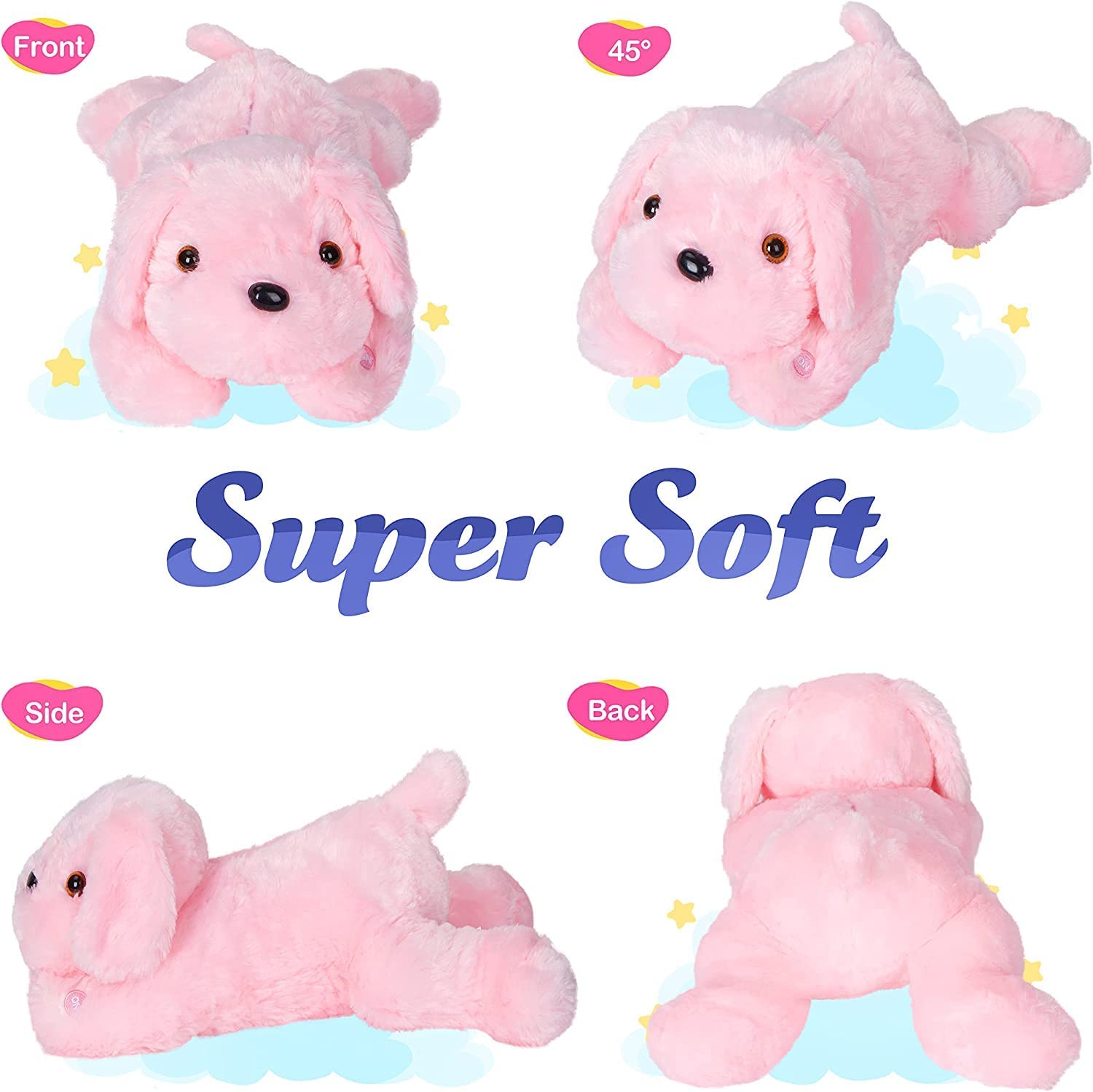 WEWILL 18'' Light up Pink Puppy Dog LED Stuffed Animal with Colorful Night Light Glow Soft Plush Toy Gifts for Kids on Christmas Birthday