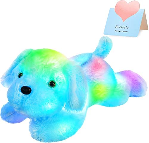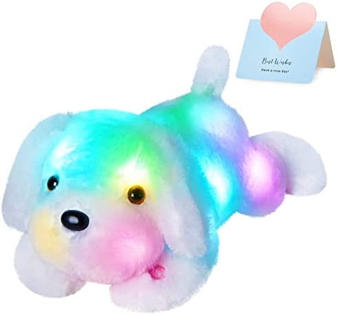 • CUDDLY SIZE AS STUFFED PILLOW---This light up dog is about 18 inch in length and 7 inch in height, appropriate size for both kids and adults to snug or cuddle when tired. It is a soft toy for children, decoration for families, and also nice gifts for friends, toddlers, teen, on Christmas, New Year, Birthday, anniversary and many other festivals.