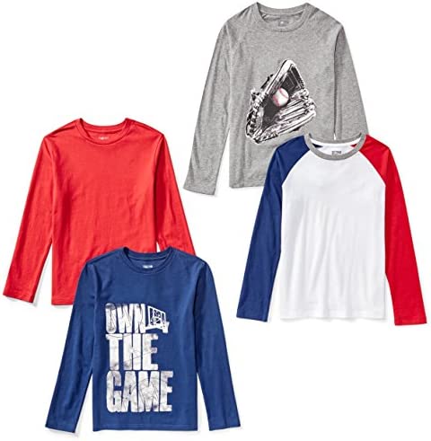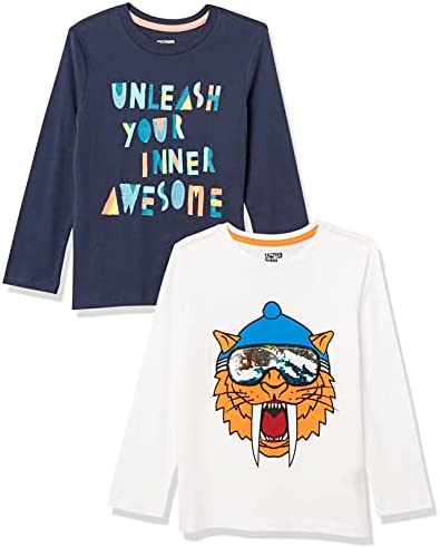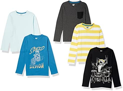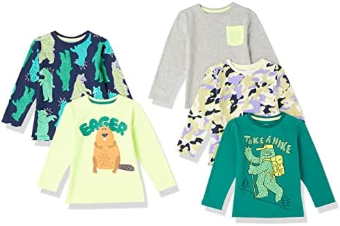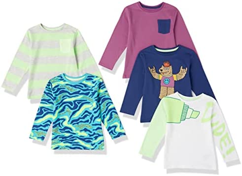 Amazon Essentials Boys' Long-Sleeve T-Shirt (Previously Spotted Zebra), Multipacks