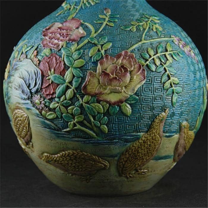 ZHYH Classic Green Ceramic Vase Embossment Antique Porcelain Flower Vase for Decoration