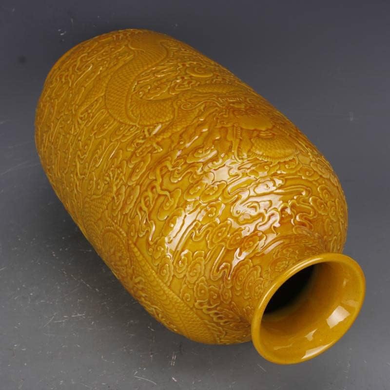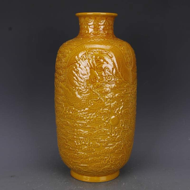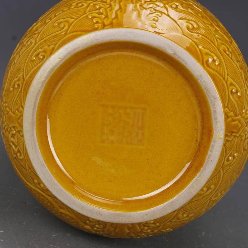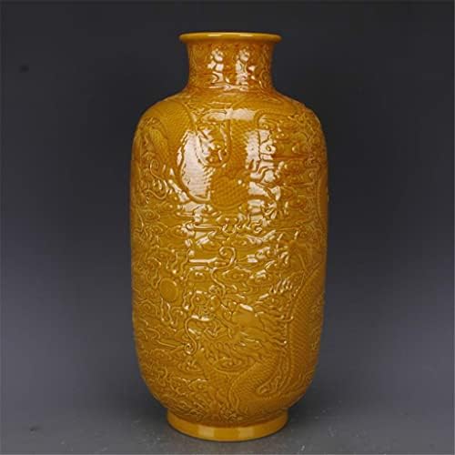ZHYH Antique Yellow Glaze Embossed Home Decoration Porcelain Flower Vase Collection Vase