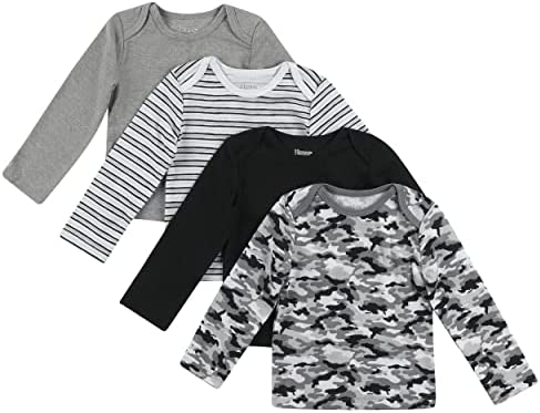 Hanes Baby Long-Sleeve Undershirt, Flexy Soft Knit Expandable Shoulder Pullover for Babies & Toddlers, 4-Pack