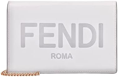 The Fendi Roma Ghiaia Wallet on Chain is beautiful and luxurious. The off-white soft leather is enhanced by the bold Fendi logo across the front. Carry by hand or over the shoulder by a delicate gold chain. Flap opening reveals a main compartment with credit card slots and a zippered pouch. Items stay secure with a snap closure. A beautiful white handbag perfect for everyday, weddings, an evening out and more. This timeless piece will bring joy for years to come.