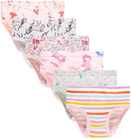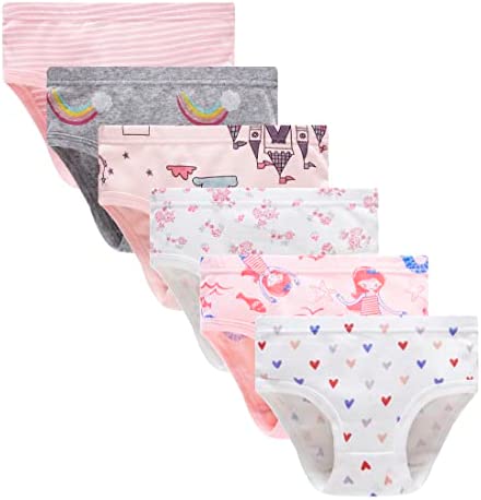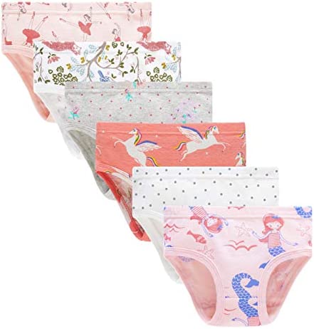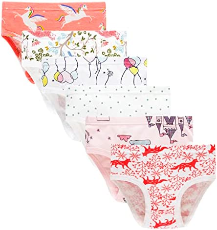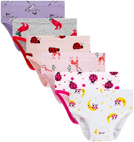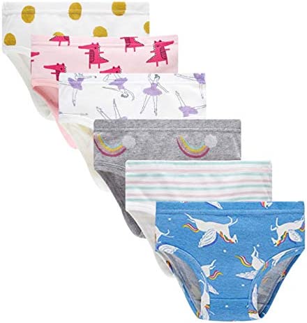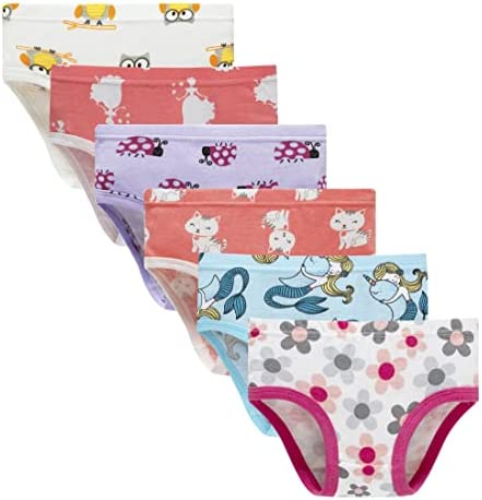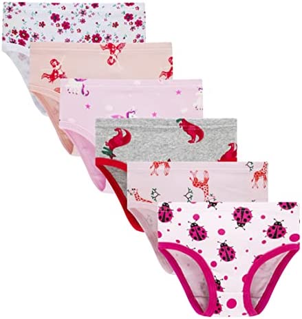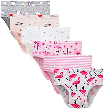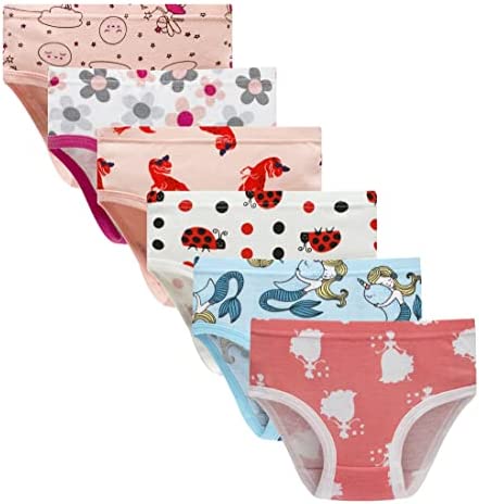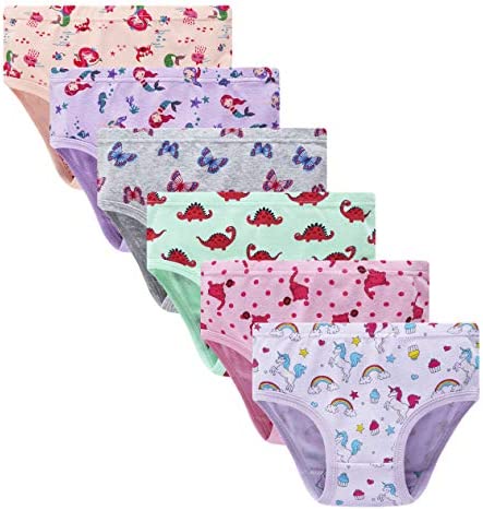 Material:100% cotton, keep her cool and comfy all day, they are ideal for everyday wearComfortable double-layer covered waistbandThe elastic leg openings make them easy to wearYour little one will adore the colorful graphics and everyday comfort of this 6-pack of girls' underwearUnderwear is designed for the safety and health for kids,we are attention to the detail ,simple but comfortable,ensure your children move freelyPackage included: pack of 6 pieces of Girls Panties