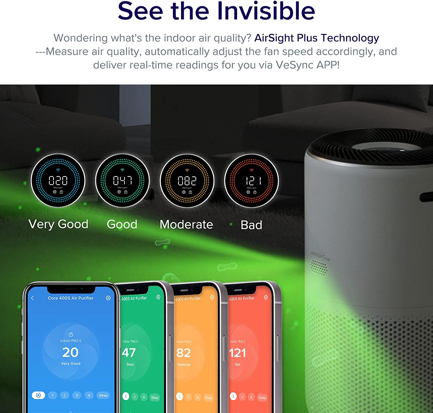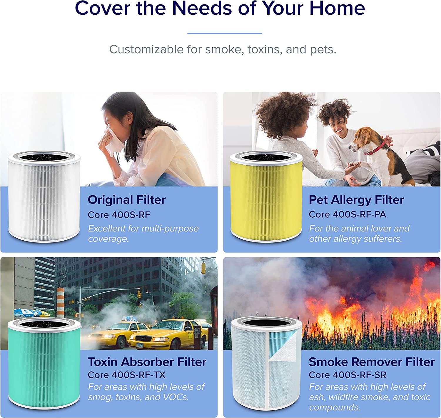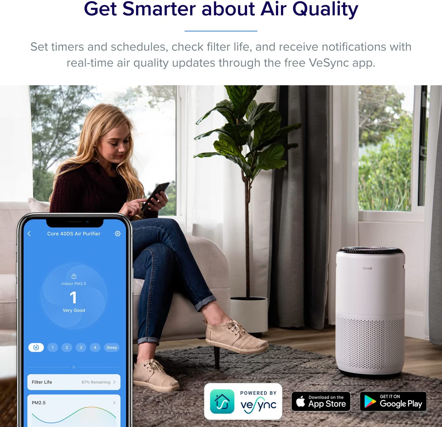 • TRUSTWORTHY AND SAFE: The Core 400S is Energy Star and FCC certified, ETL listed, and a recipient of the German Design Award (2021) and iF Design Award (2021). Only use Levoit replacement filters (search B08SQQK6K7) for best results and product performance
