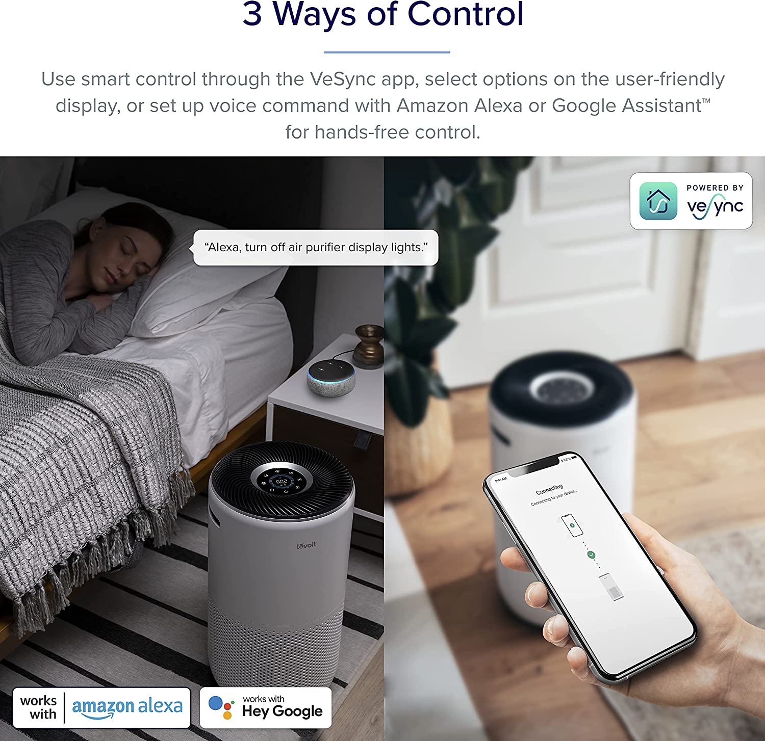 LEVOIT Air Purifiers for Home Large Room, Smart WiFi and PM2.5 Monitor H13 True HEPA Filter Removes Up to 99.97% of Particles, Pet Allergies, Smoke, Dust, Auto Mode, Alexa Control, White